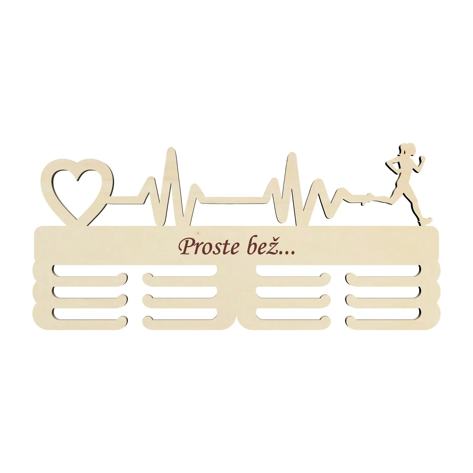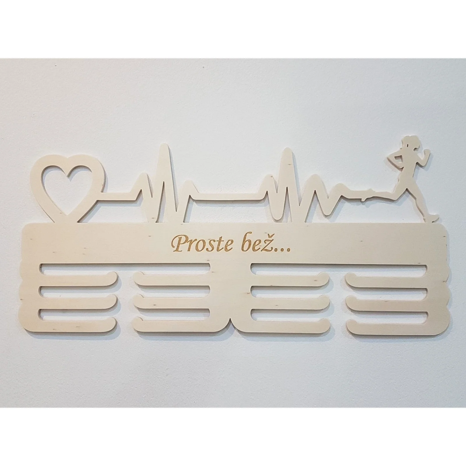Drevený držiak na medaile s laserovaným textom 45cm pulz srdca