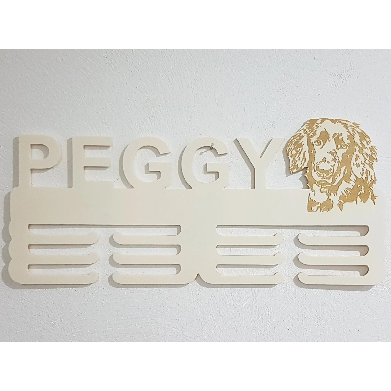 Drevený držiak na medaile s laserovaním 45cm psík Hovawart