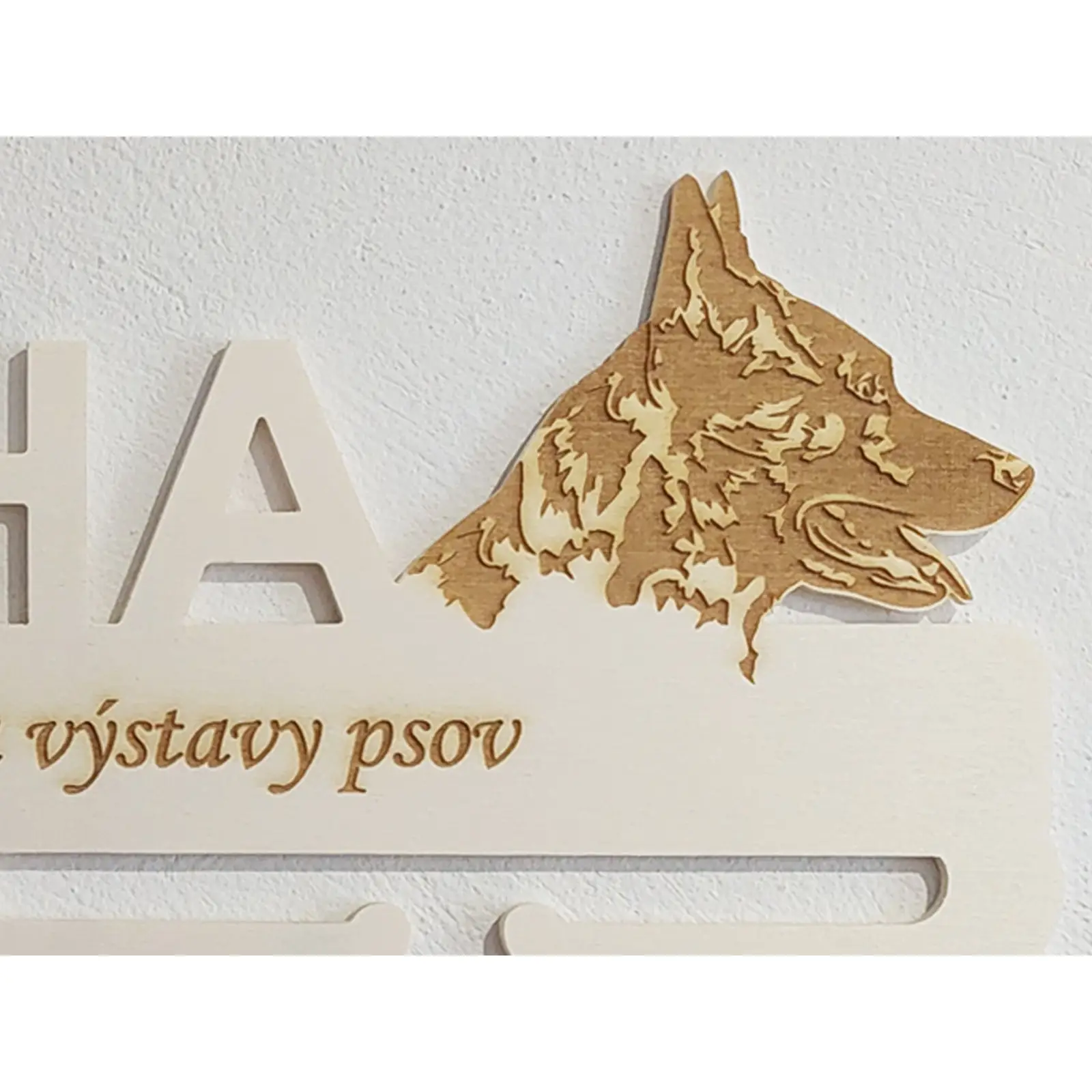 Drevený držiak na medaile s laserovaním 45cm pes Holandský ovčiak krátkosrstý