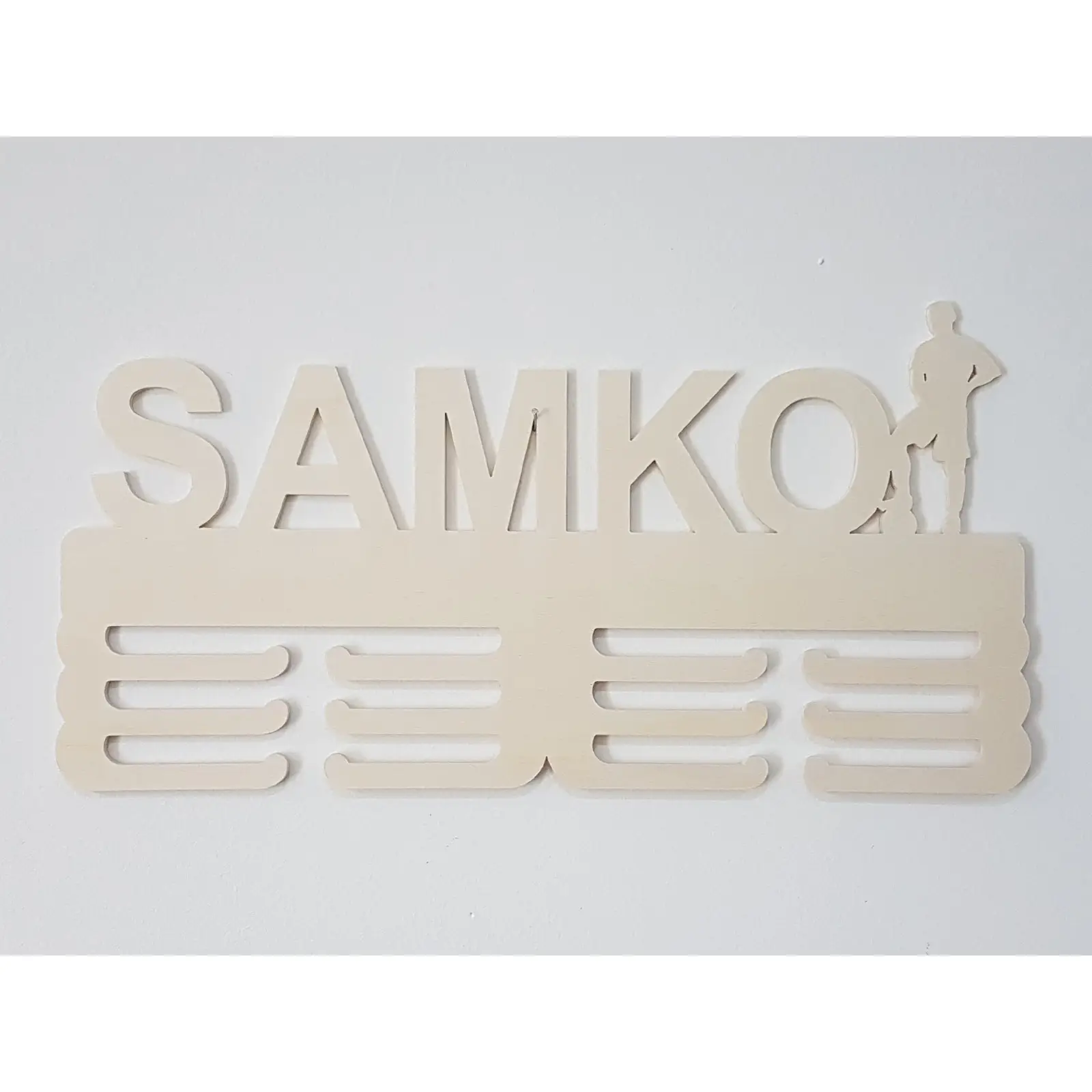 Vyberte si meno a šport, ktorý vás definuje, a my vytvoríme návrh, ktorý bude zrkadliť vašu vášeň. S rozmermi šírky 45cm a výškou variabilnou podľa dĺžky mena, tento vešiak pôsobí elegantne a zároveň robustne, čo zabezpečuje, že vaše medaily budú visieť bezpečne a s dôstojnosťou.