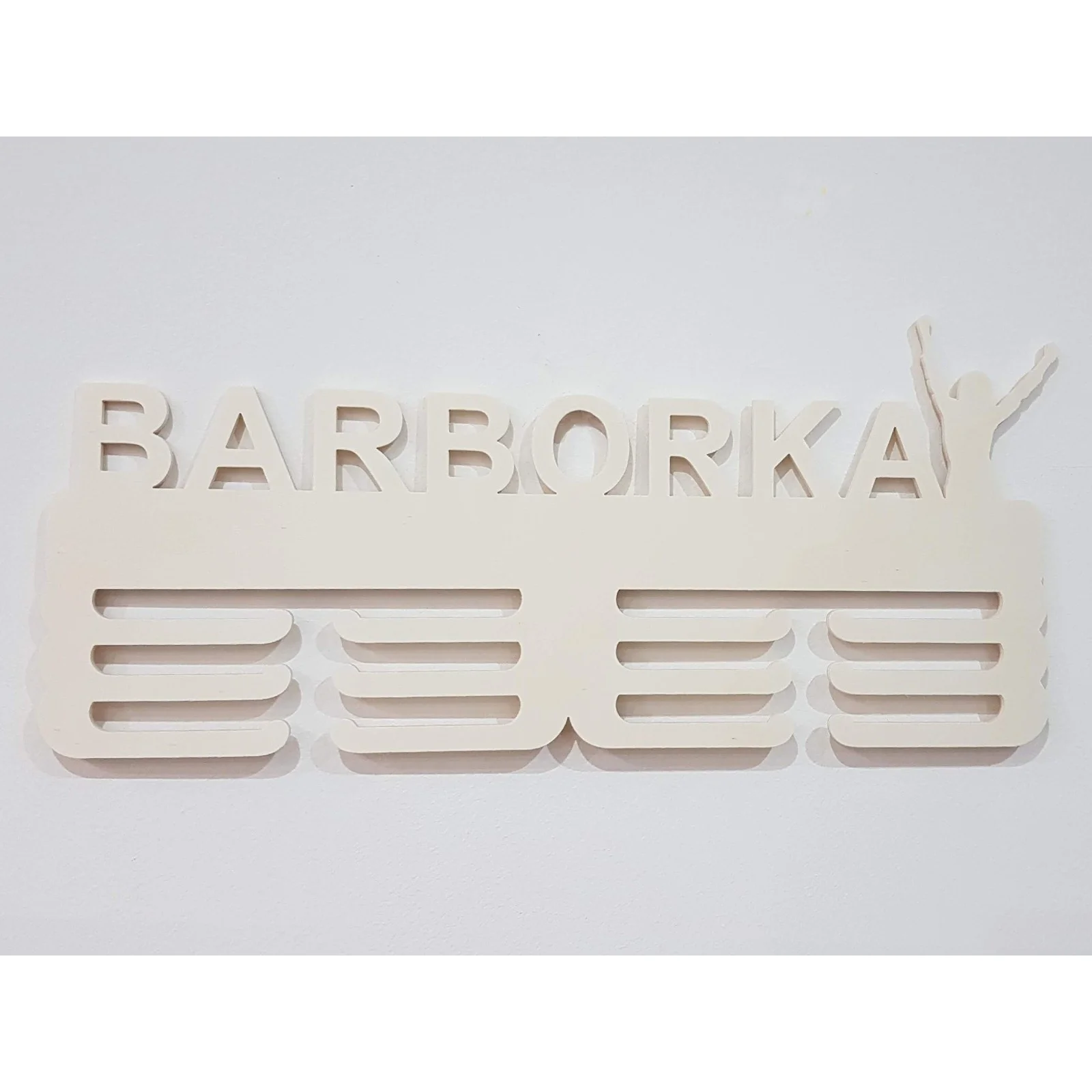 Drevený vešiak na medaily s menom víťazná póza 45cm