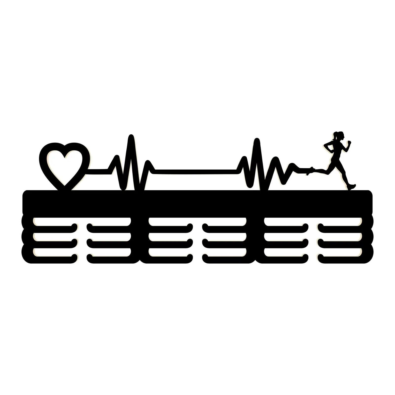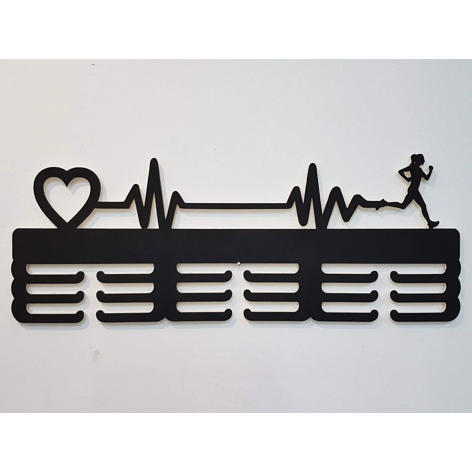 Drevený vešiak na medaily maľovaný 55cm SRDCE PULZ BEH