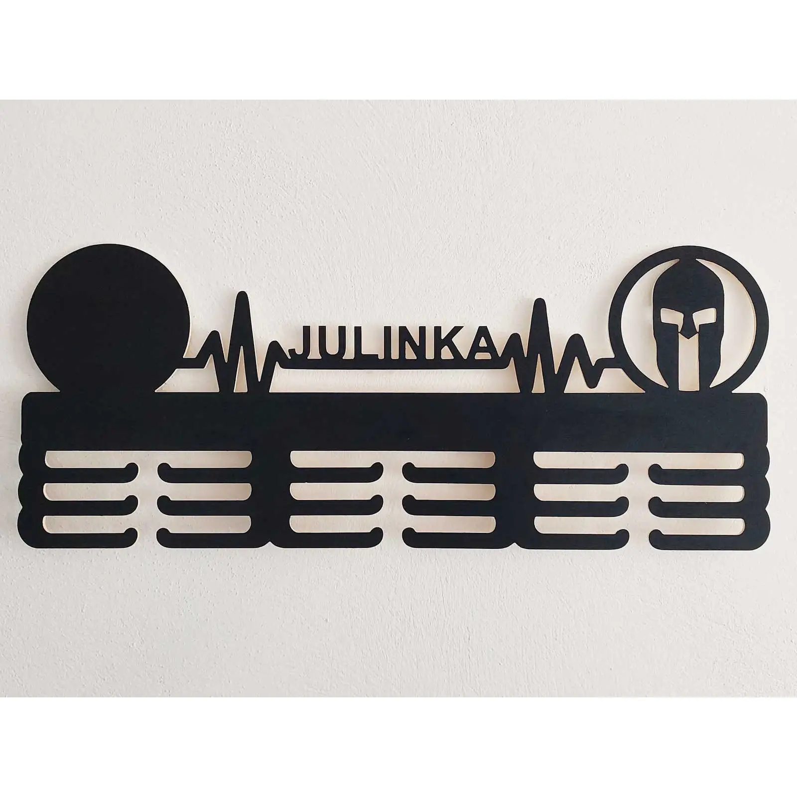 Dopraj svojim TRIFECTA medailám zaslúžené miesto, kde budú môcť žiariť a pripomínať ti tvoju silu a odhodlanie každý deň. Tento drevený vešiak s osobným odkazom je viac než len držiak – je to oslava tvojich úspechov zvečnená v krásnom a trvanlivom materiáli.