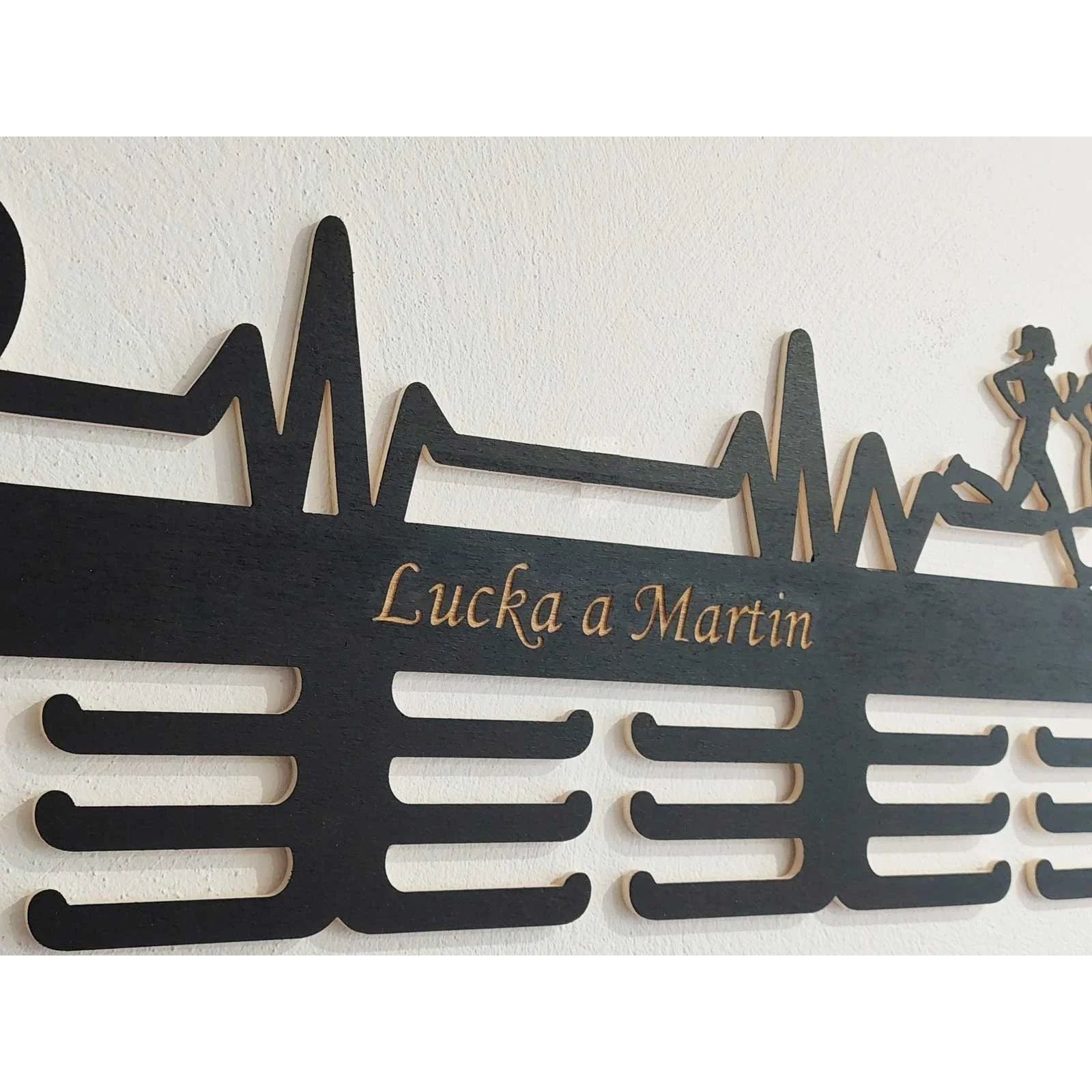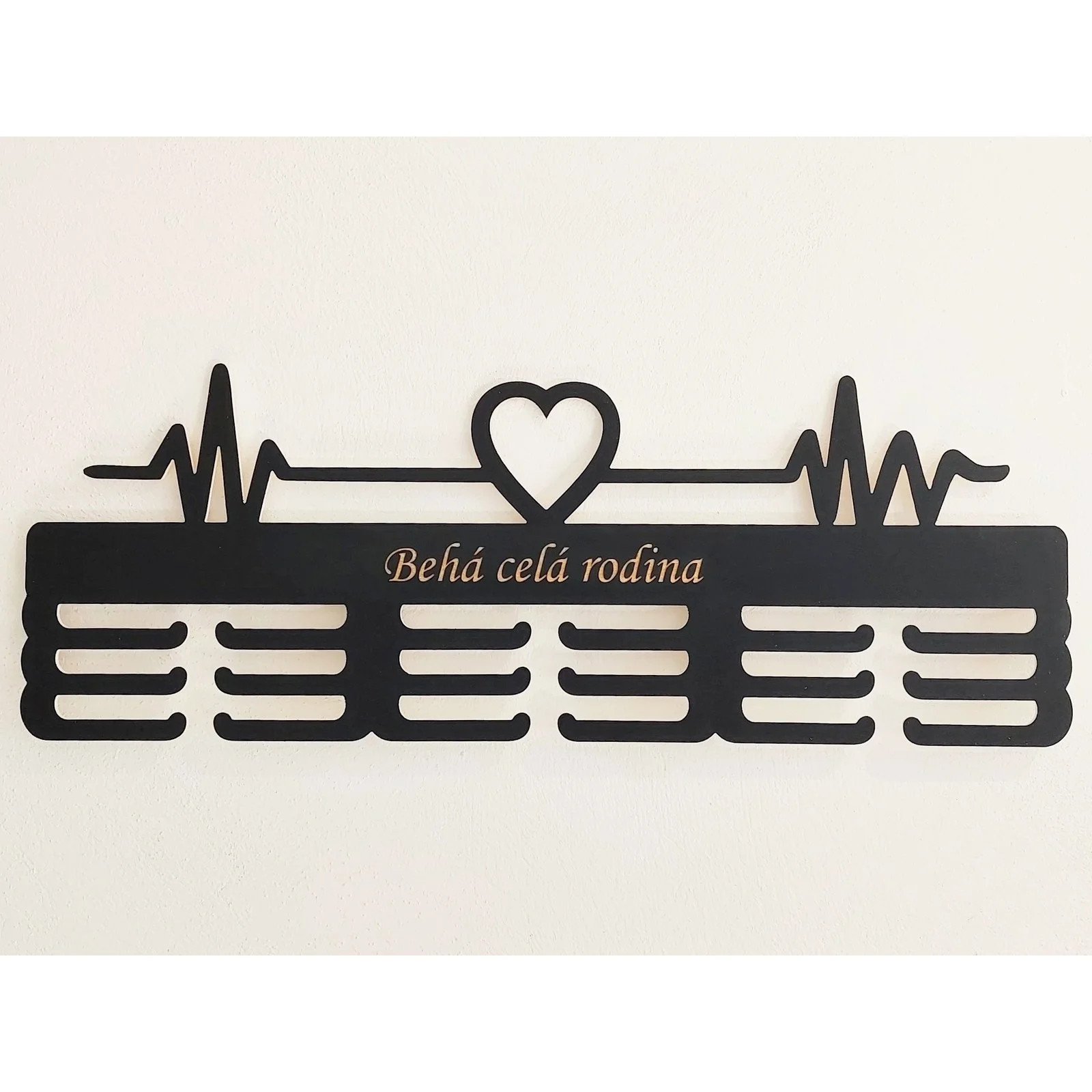 Každá medaila rozpráva príbeh. Príbeh o odhodlaní, prekonaných prekážkach, hodinách tvrdej práce a nesmiernej radosti z dosiahnutého cieľa. Zaslúžia si byť vystavené s hrdosťou, nie ukryté v škatuli. Preto ti s nadšením predstavujeme drevený držiak na medaily s motívom pulzu srdca, ktorý nielenže elegantne usporiada tvoje cenné trofeje, ale zároveň bude štýlovou dekoráciou tvojho interiéru.
