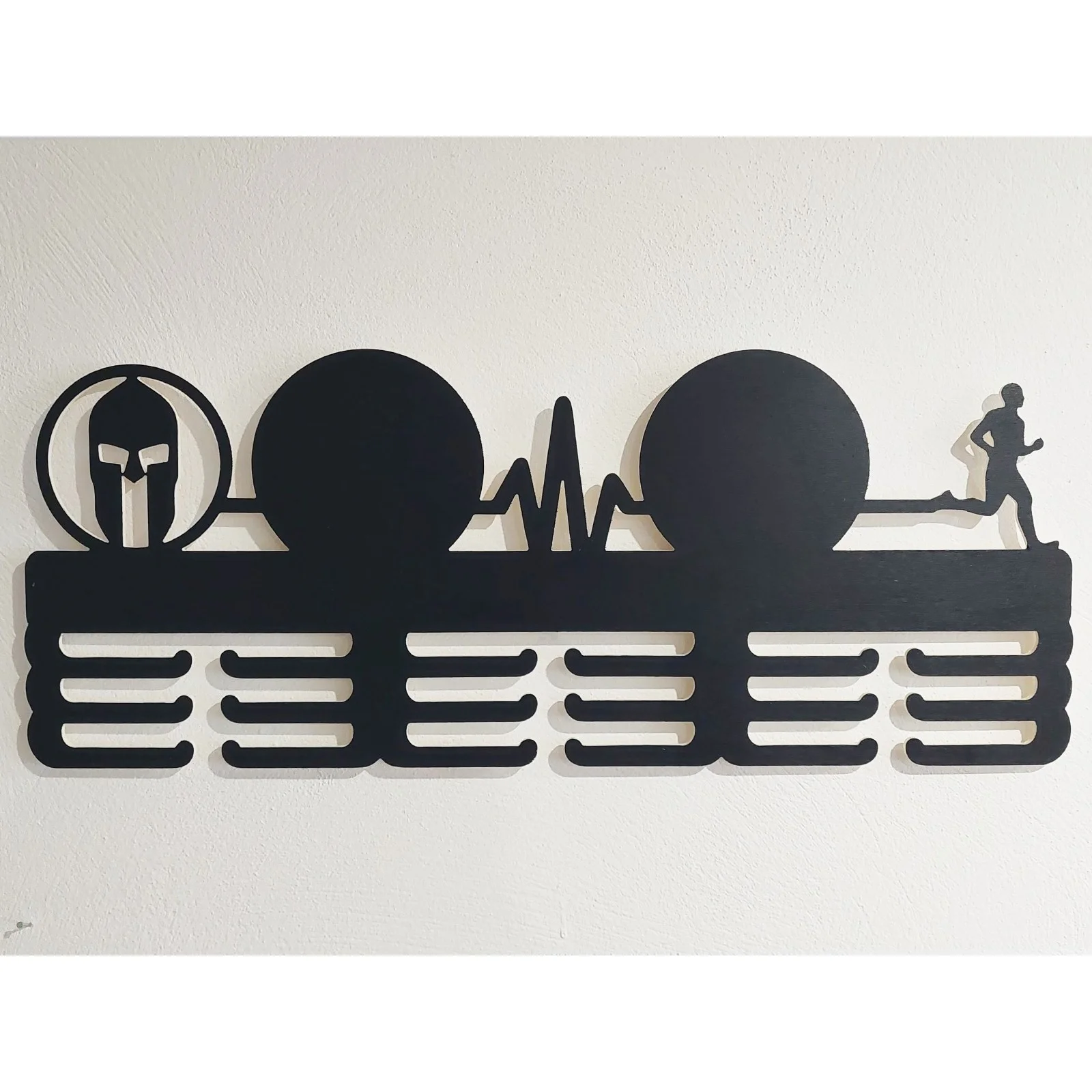 - Dôstojné miesto pre tvoje medaily: Už žiadne pohodené medaily v krabiciach či na kľučkách. Tento držiak im poskytne čestné miesto na stene, kde budú neustále na očiach a budú ťa motivovať k ďalším výzvam.