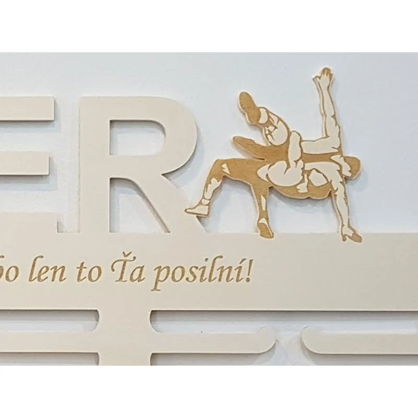 Hľadáte originálny a zároveň praktický darček pre vášho blízkeho, ktorý miluje zápasenie? Alebo chcete konečne štýlovo vystaviť svoje vlastné ťažko vybojované medaily? Potom ste na správnom mieste! Predstavujeme vám drevený vešiak na medaily s menom a gravírovaným mottom, vyrobený z kvalitnej topoľovej preglejky.