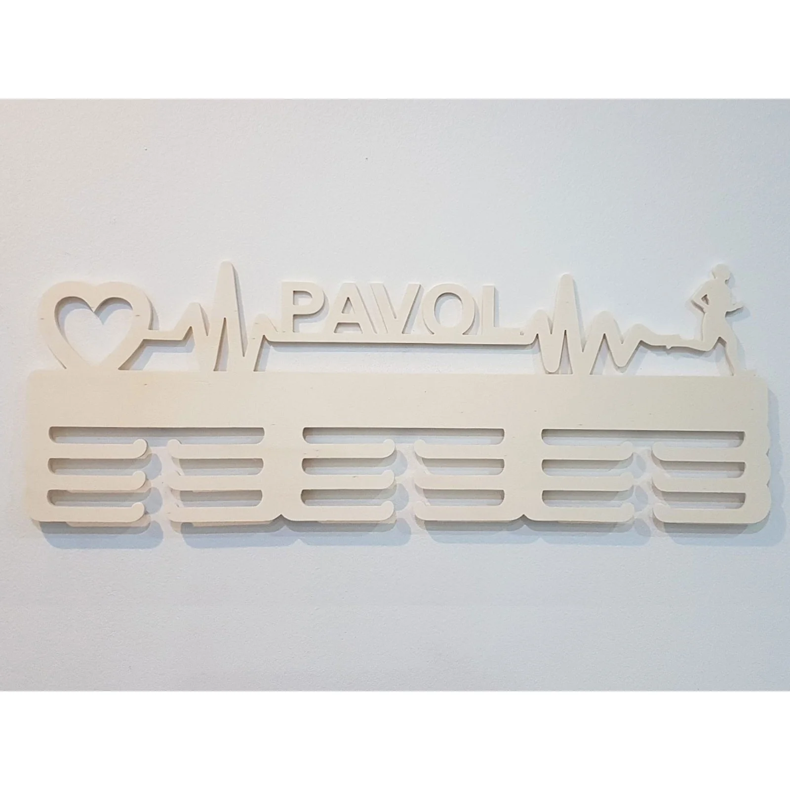 Drevený vešiak na medaily pulz tep srdca + meno 55cm