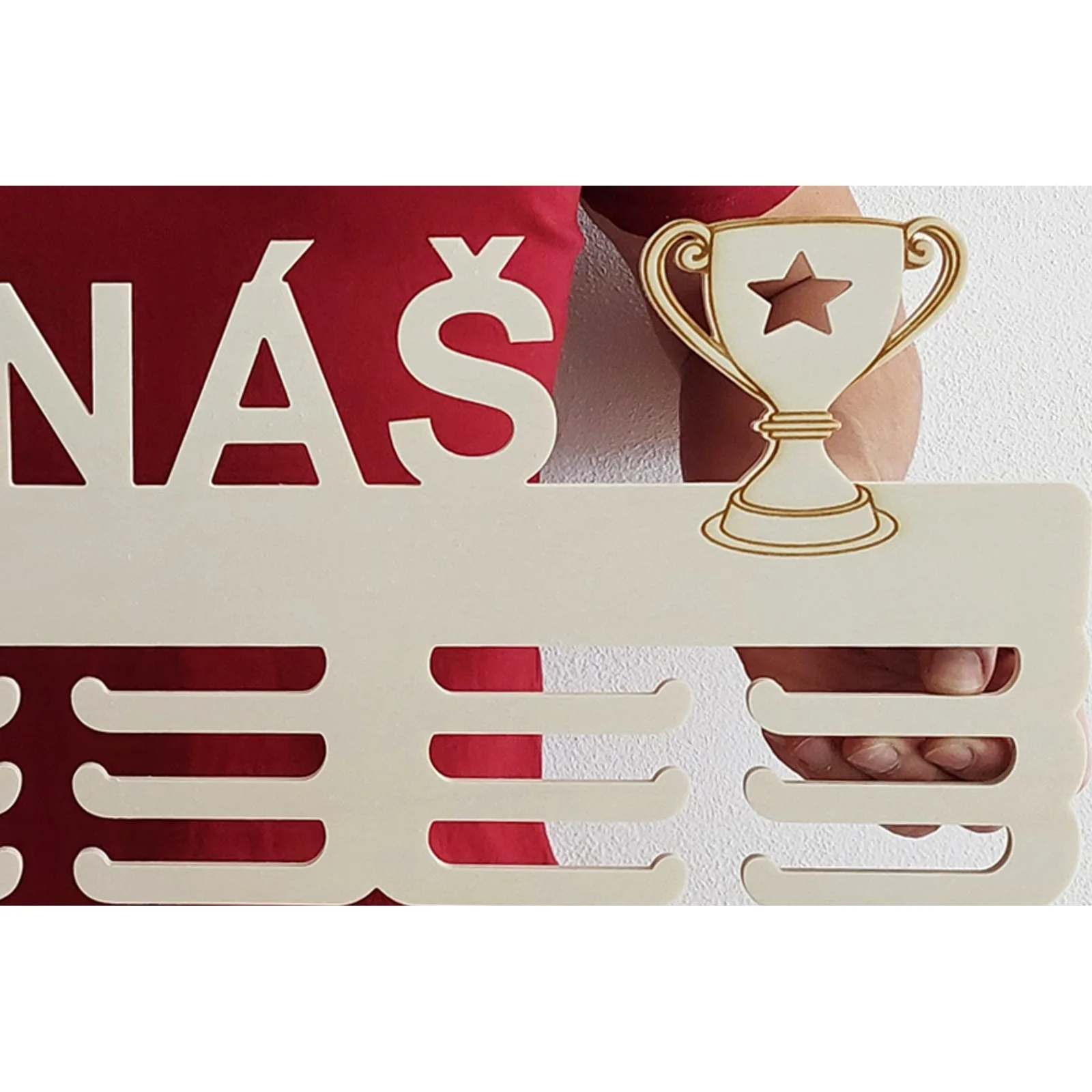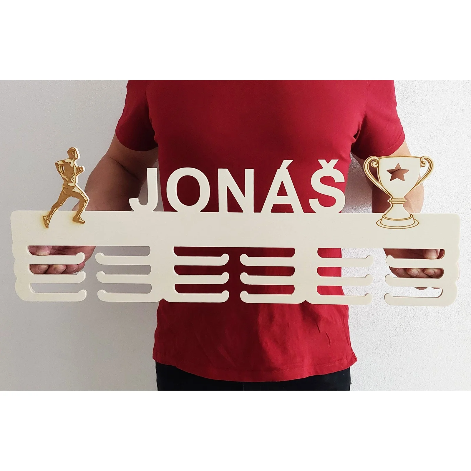 Drevený vešiak na medaily s motívom víťazného pohára je nielen praktickým doplnkom, ale aj krásnym dekoratívnym prvkom, ktorý vám bude pripomínať vaše úspechy a motivovať vás k ďalším výzvam.