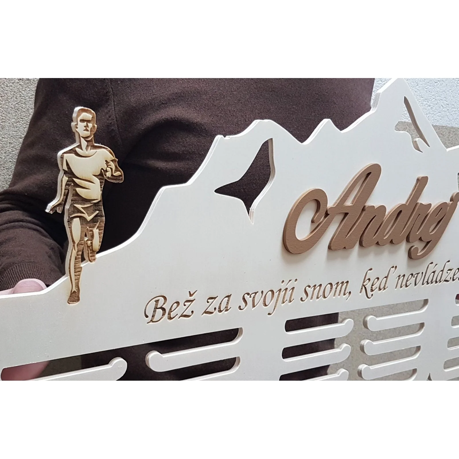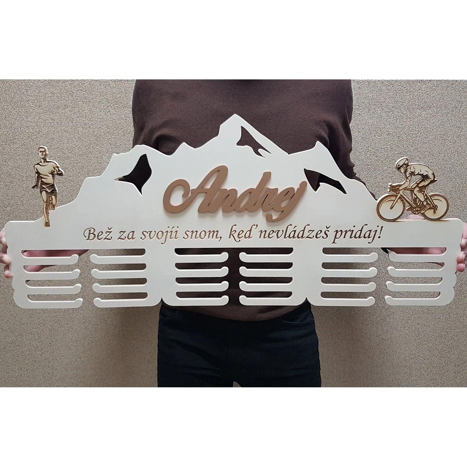 Hľadáte originálny darček pre športovca? Drevený vešiak na medaily s motívom HORY, behom a cyklistikou je skvelou voľbou. Je to darček, ktorý poteší, inšpiruje a bude pripomínať všetky prekonané prekážky a dosiahnuté ciele.