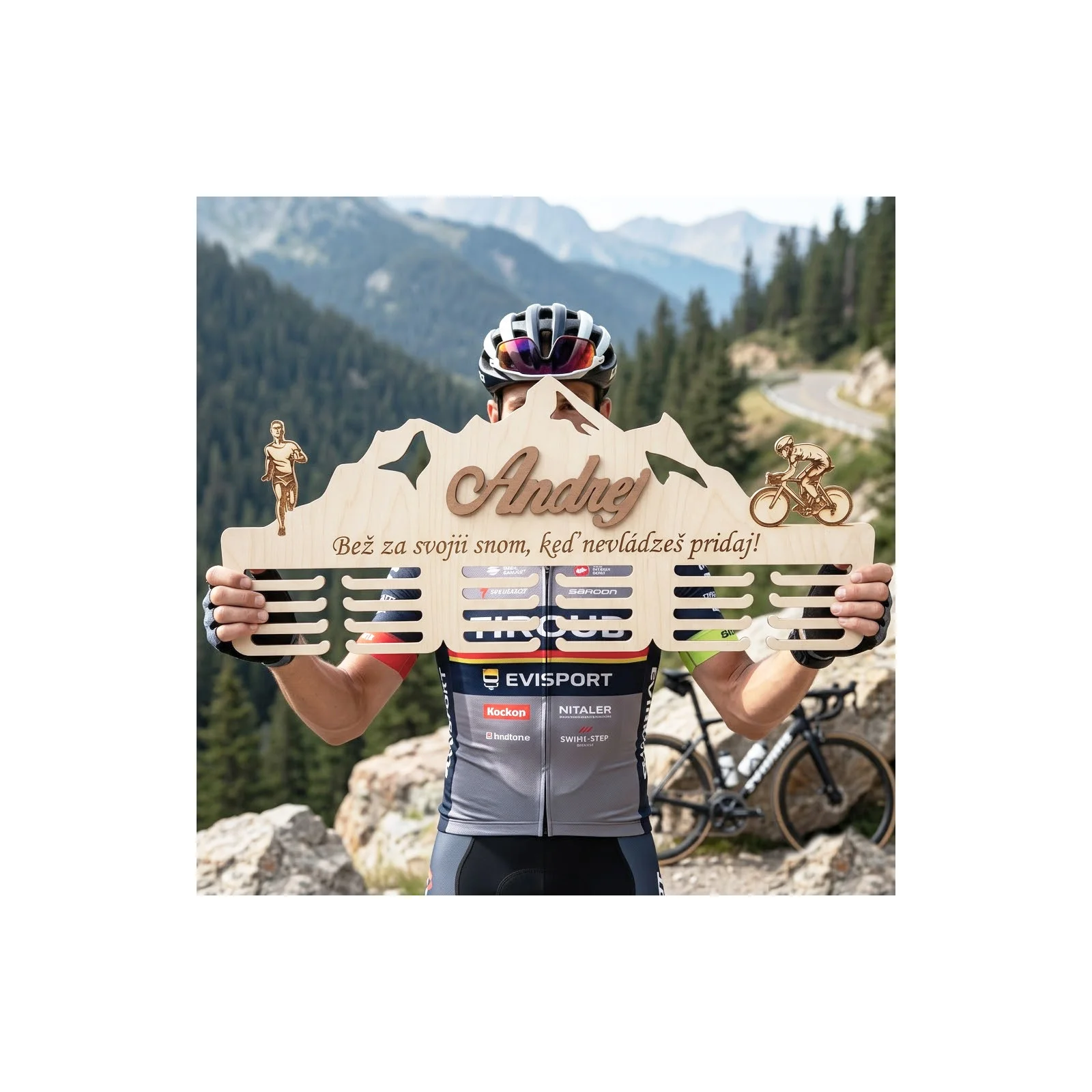 Hory, beh a cyklistika: Drevený vešiak na medaily s dušou