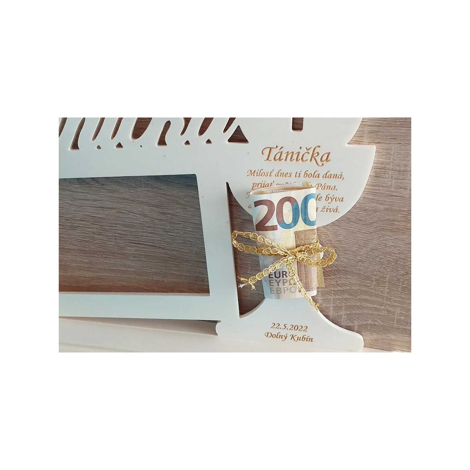Náš typ pomocou stužkou môžete pribaliť aj finančný dar viď foto v galérii. (Balenie neobsahuje euro bankovky.)