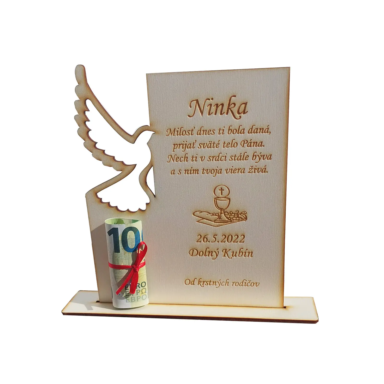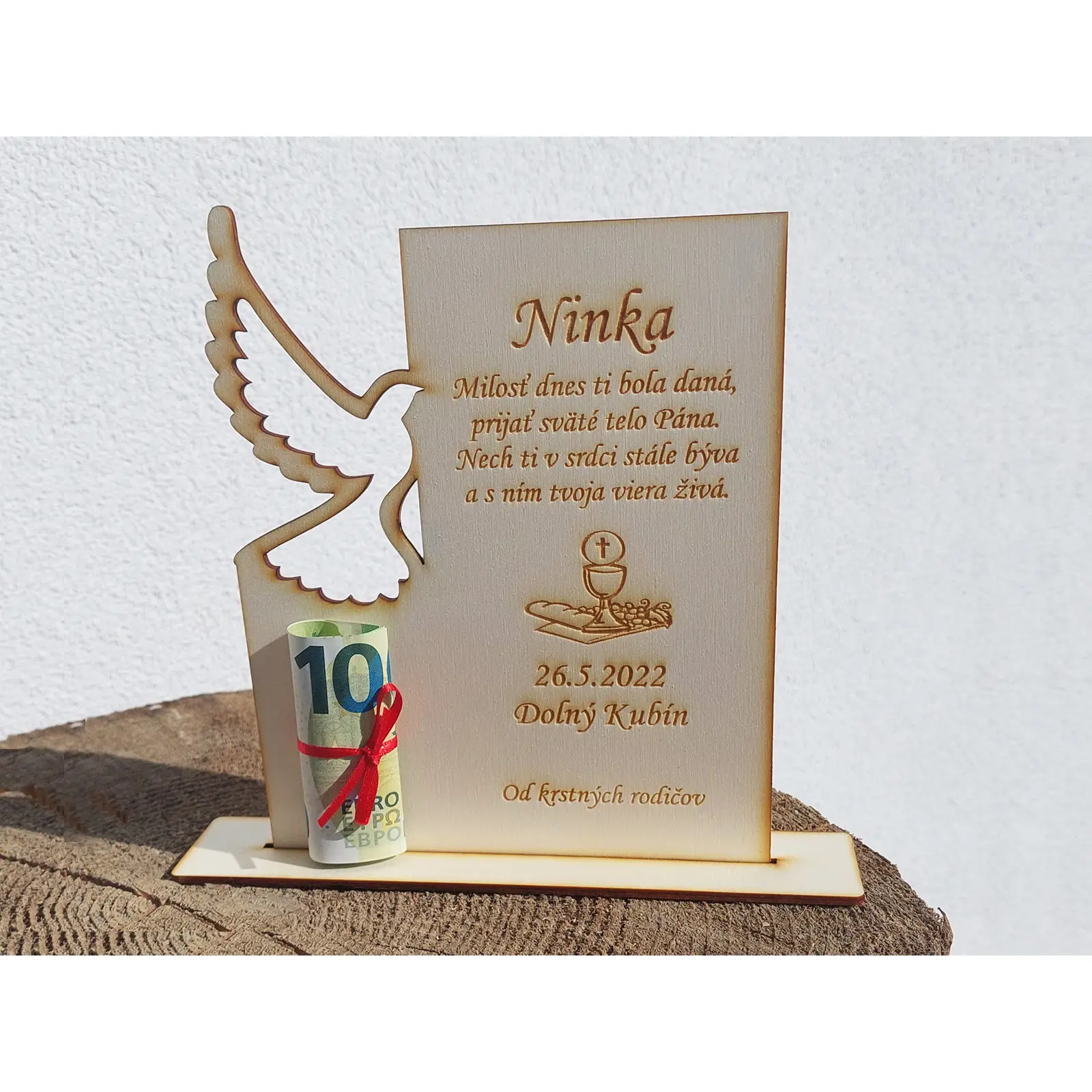 Geschenk zur ersten heiligen Kommunion oder Firmung, Höhe 20cm, Breite 16cm, mit individueller Widmung.