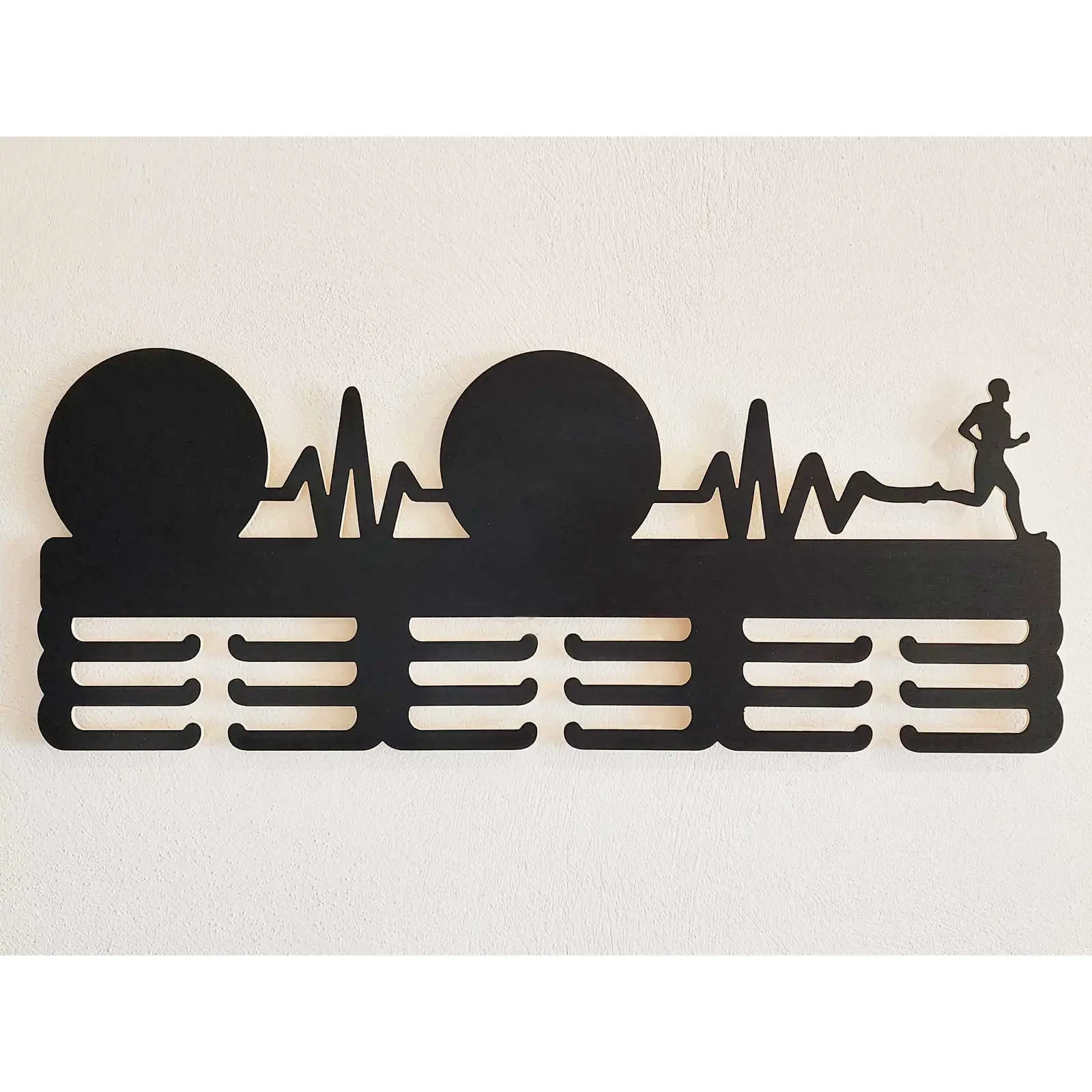 Holzmedaillenhalter mit Namen und gelasertem Text 55cm Lauf Leichtathletik