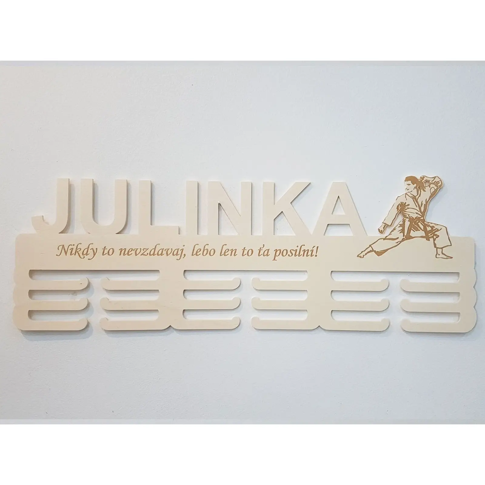 Holzmedaillenhalter mit Namen und gelasertem Text 55cm Karate