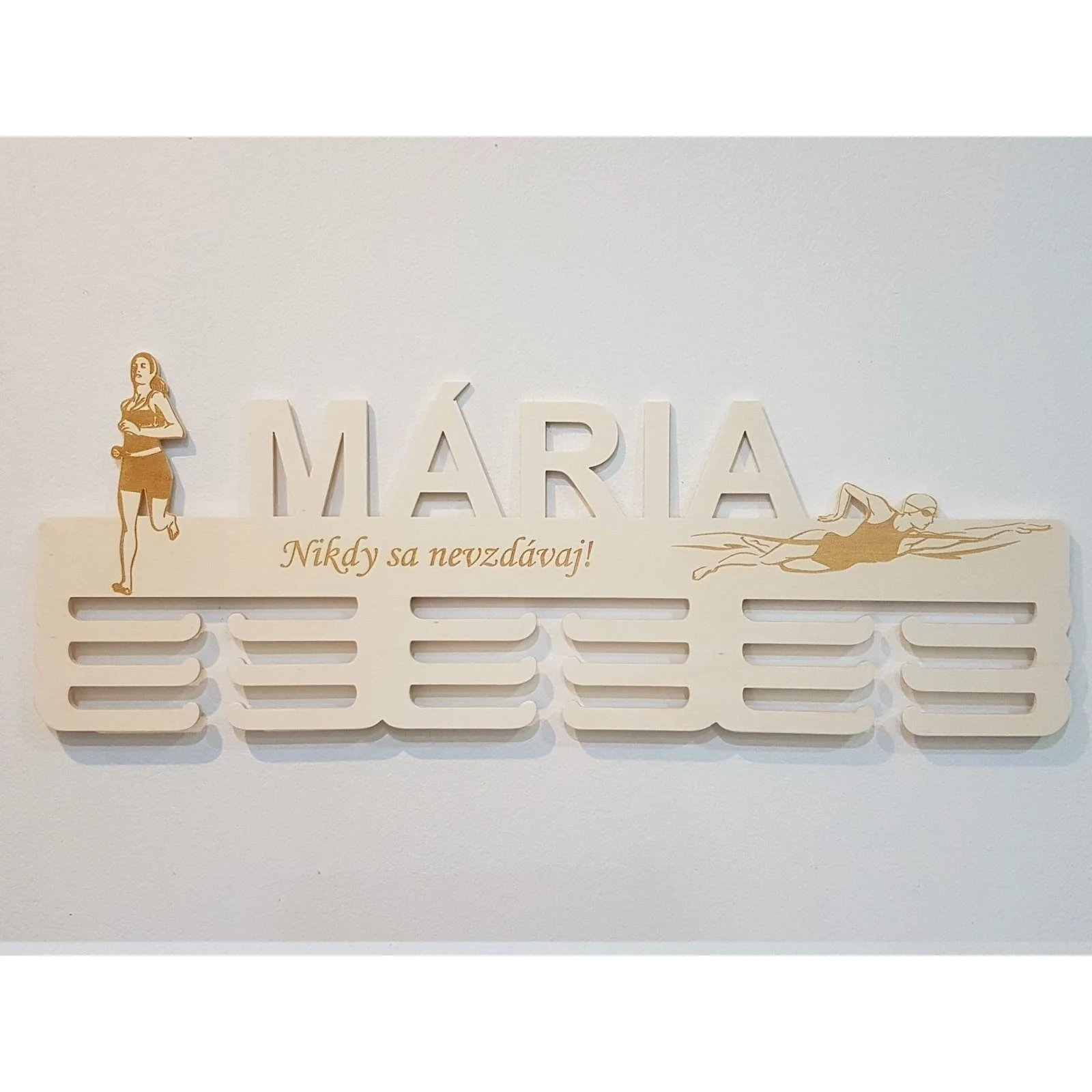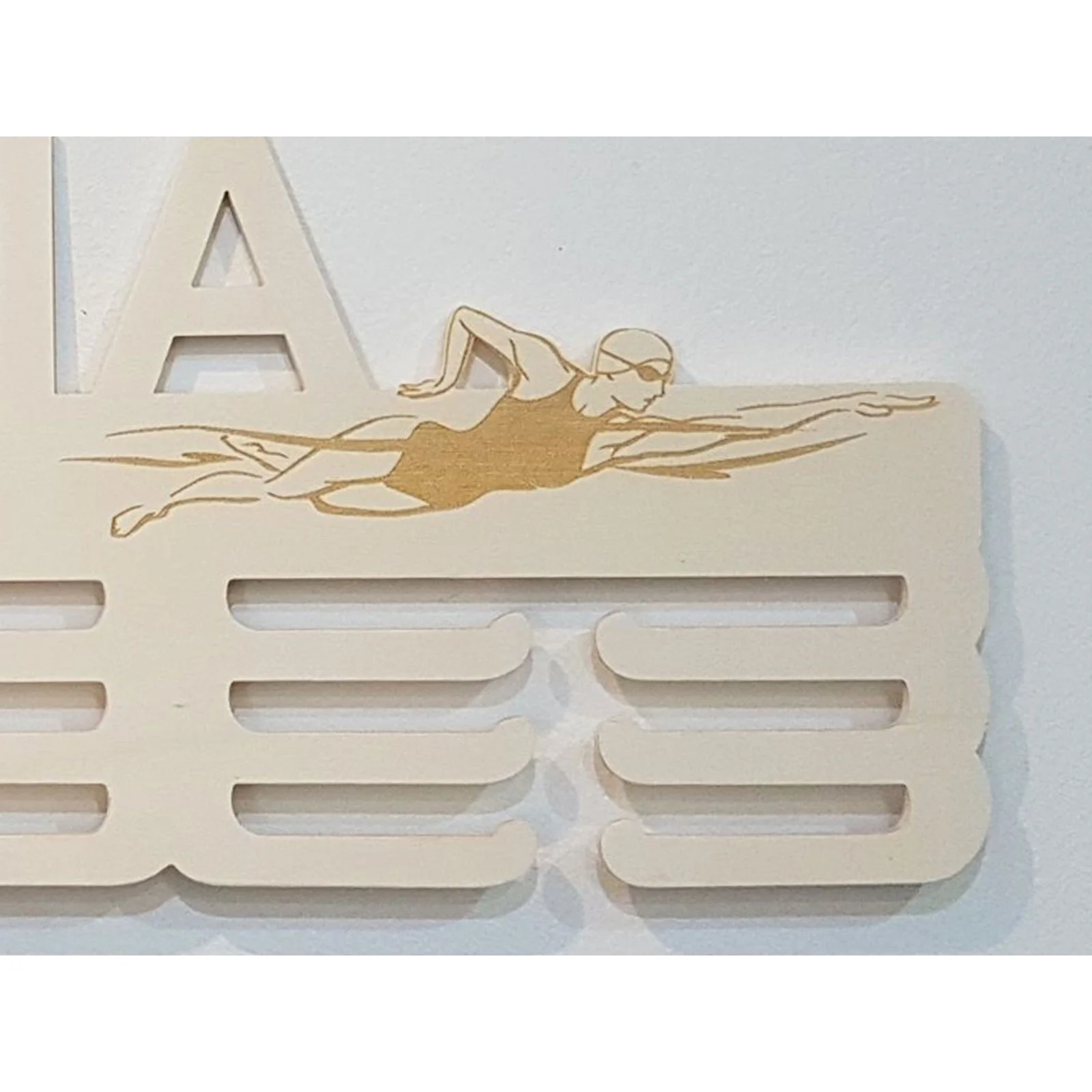 Holzmedaillenständer für Leichtathletik, 55 cm hoch, bemalt und graviert
