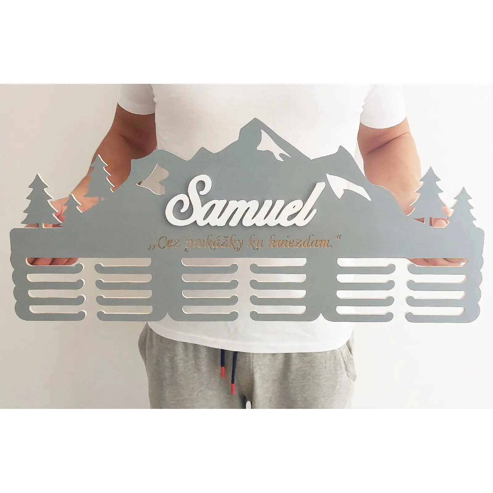 Suchen Sie nach einer originellen Möglichkeit, Ihr Zuhause zu dekorieren und gleichzeitig Ihre sportlichen Erfolge zu zeigen? Der gemalte Holzmedailenhalter ist die ideale Lösung! Dieses personalisierte Stück verleiht Ihrem Interieur nicht nur einen stilvollen Akzent, sondern wird auch eine schöne Erinnerung an Ihre Siege.