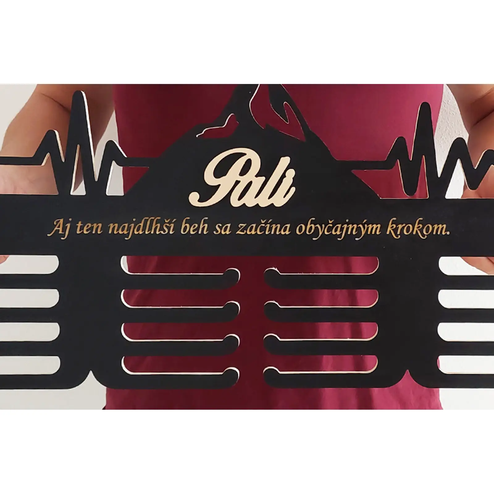 Medaillenhalter aus Holz mit Namen: Stolz an der Wand