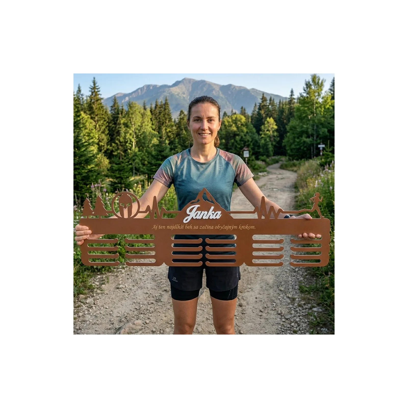 80 cm Medaillen-Trophäenhalter aus Holz + Gemälde + Name