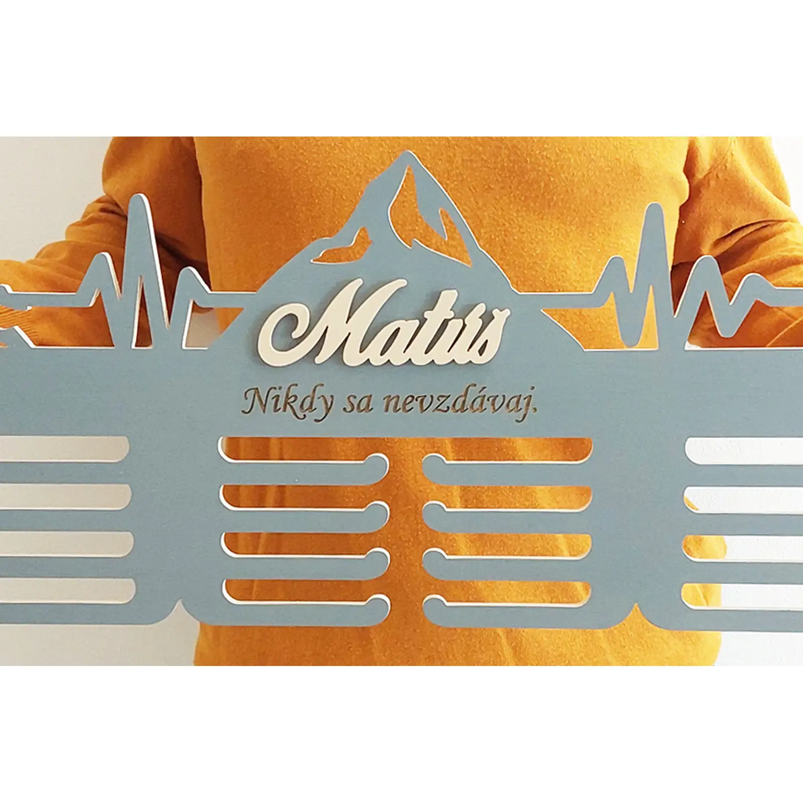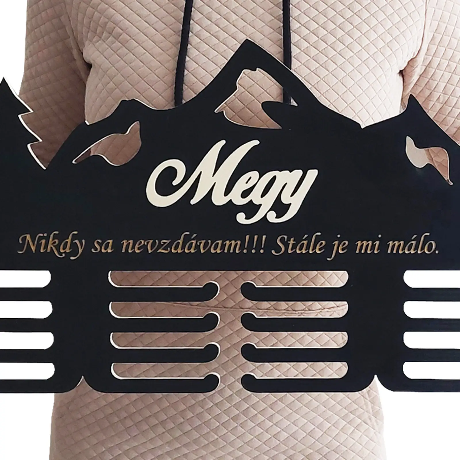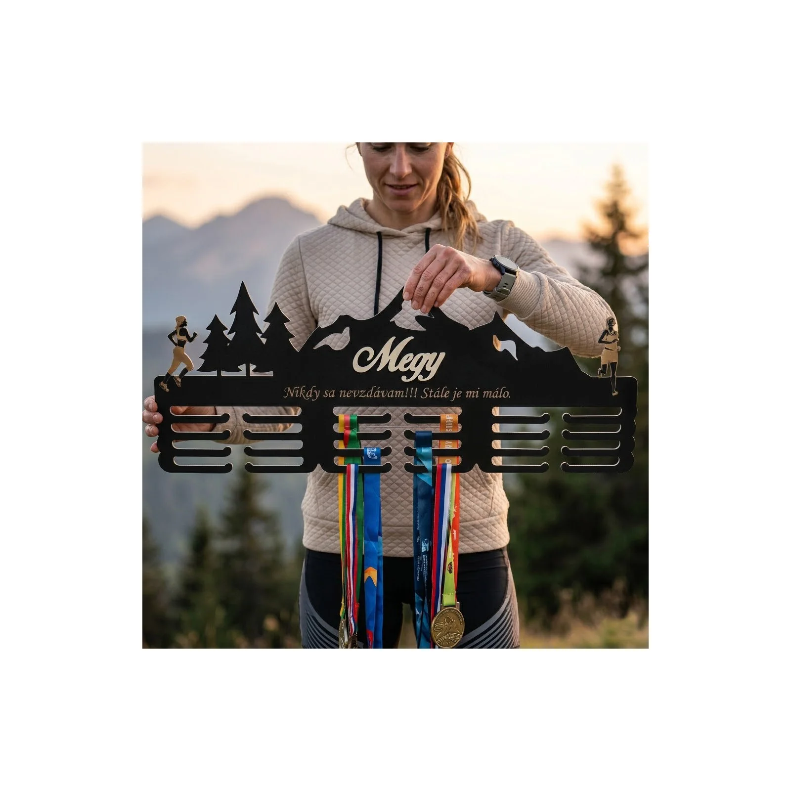 Schwarzer Medaillenhalter aus Holz 80cm + Malerei + Name
