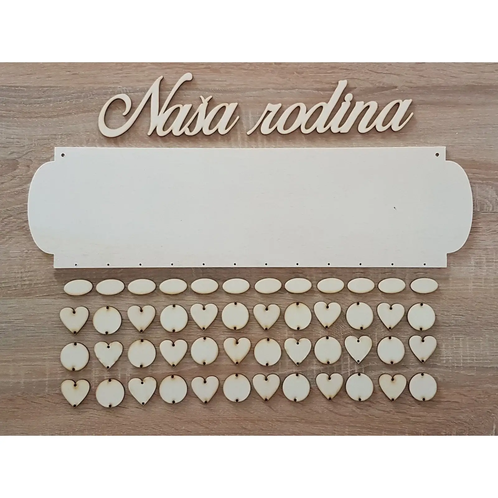 Holz Familienkalender Typ A mit der Aufschrift "Unsere Familie"
