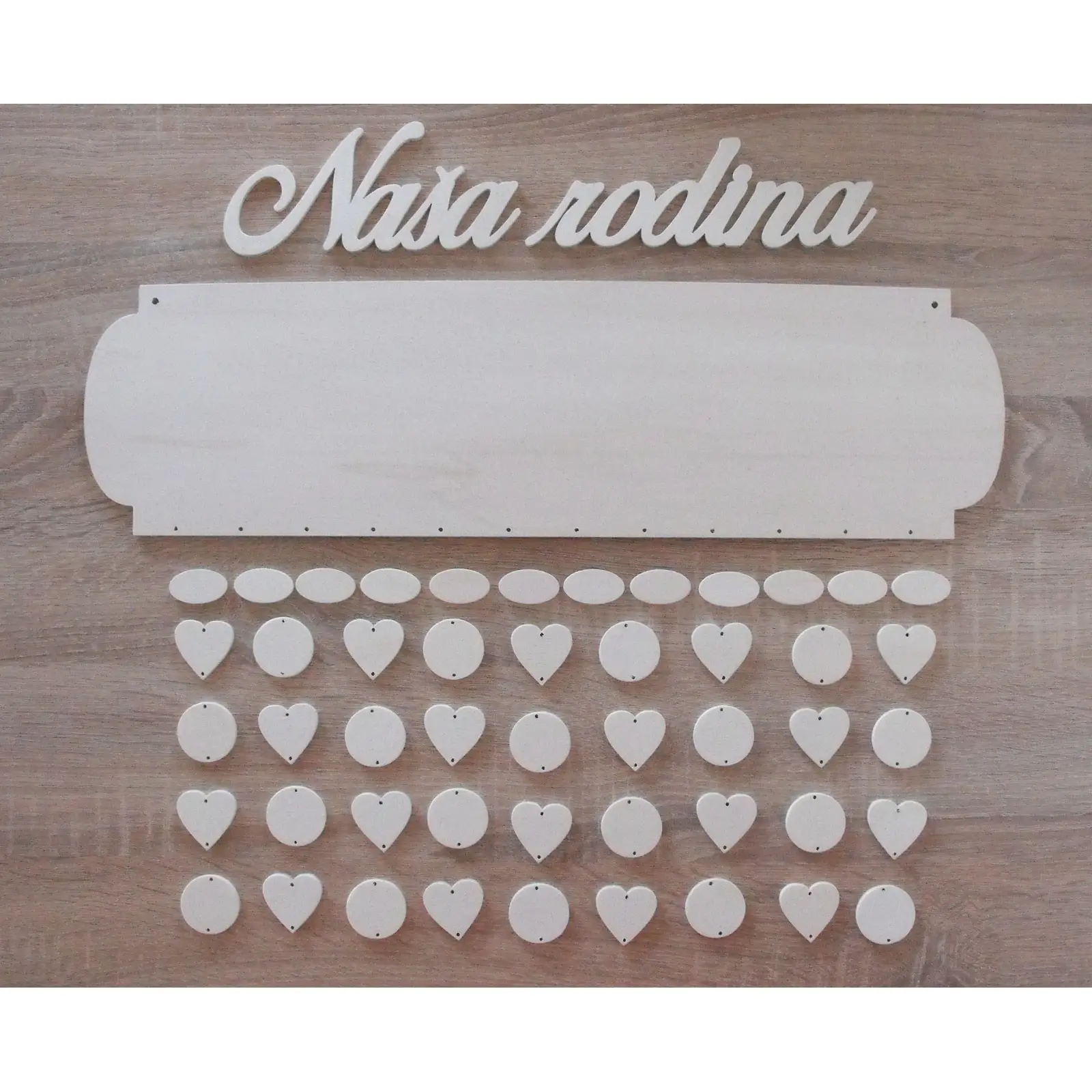 Holz-Familienkalender mit klaren Kanten Typ B mit der Aufschrift "Unsere Familie"
