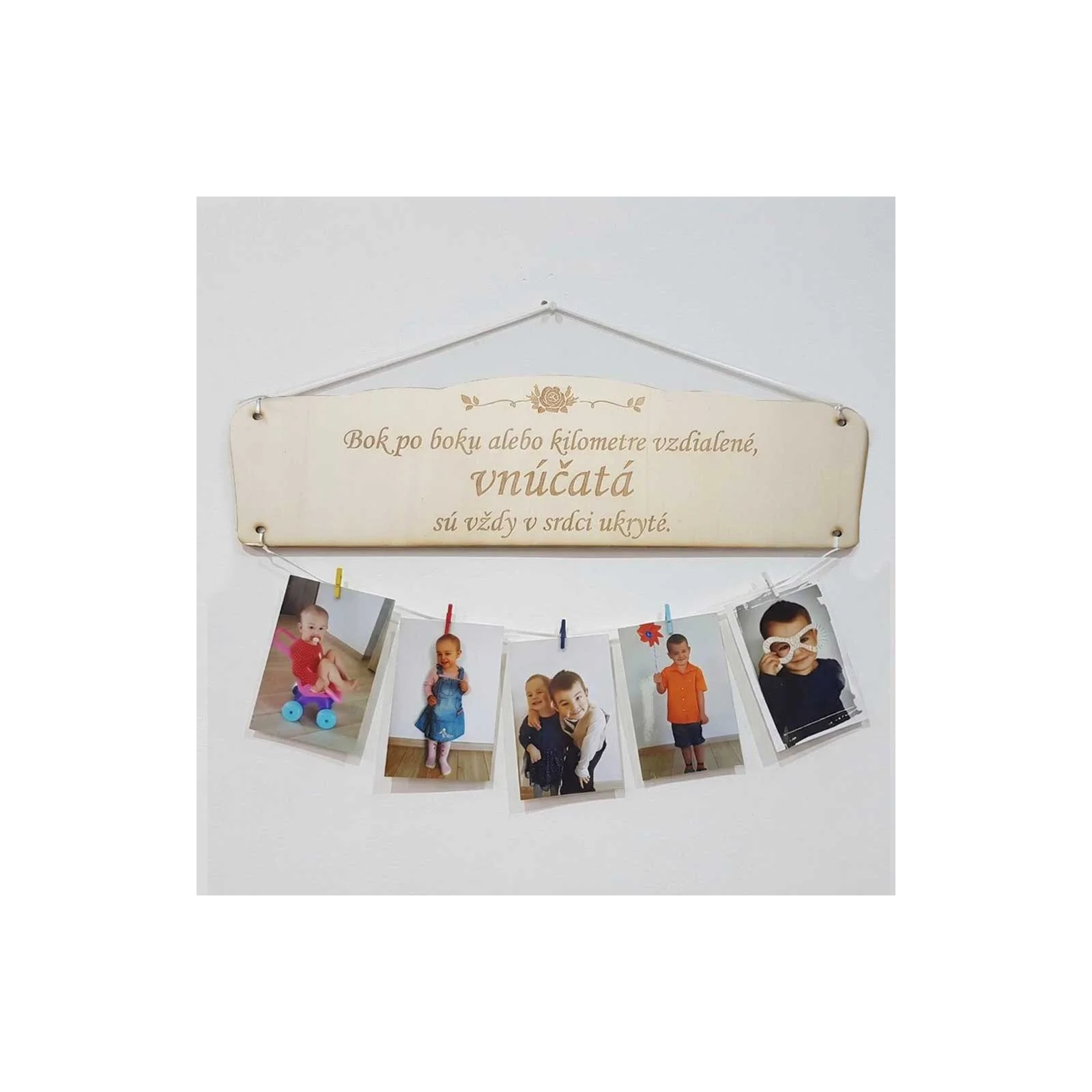 Lieferumfang: Schild mit Spruch + 5 Wäscheklammern + Schnur.