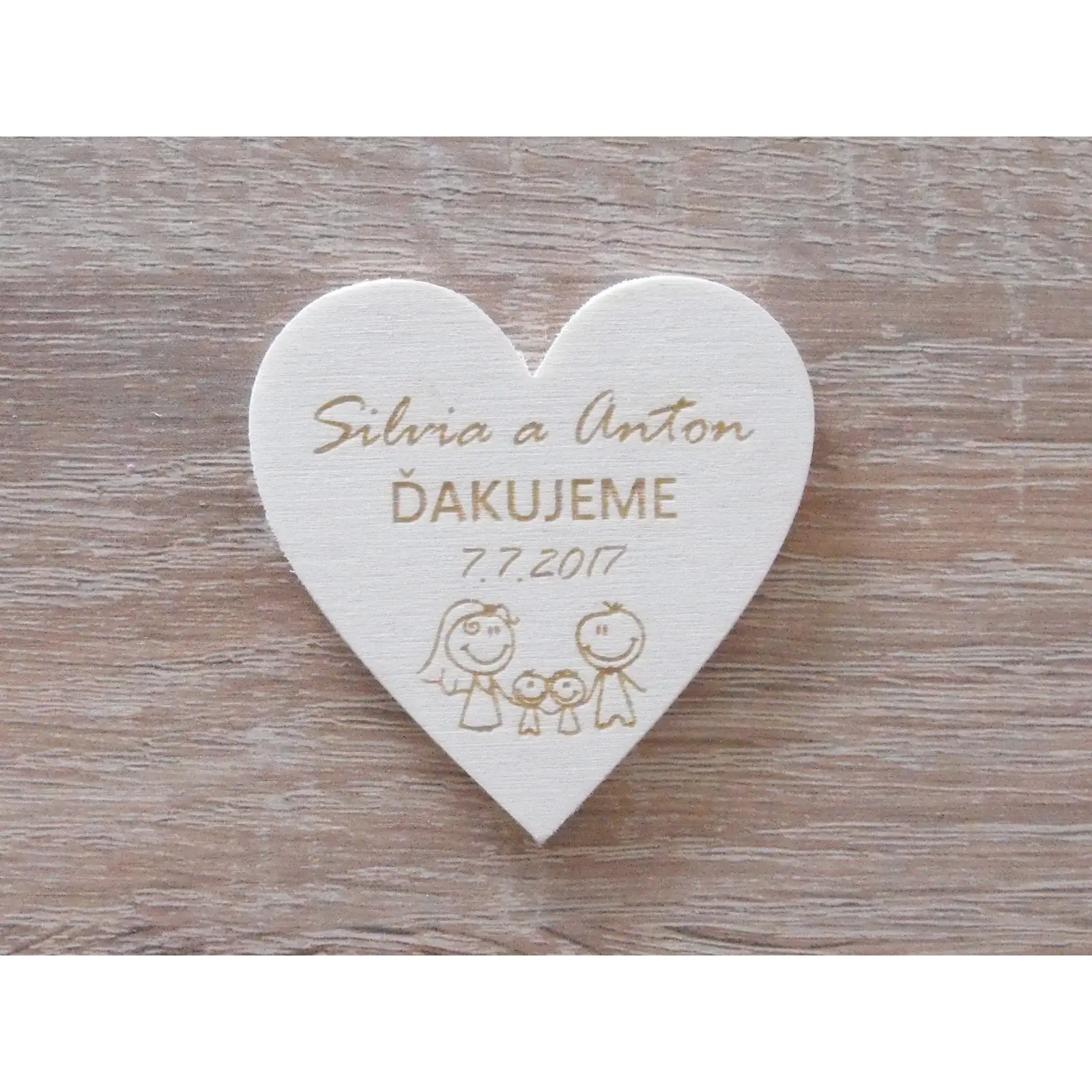 Der Text ist gelasert, seine Farbe ist immer dunkelbraun, das Bild kann problemlos geändert werden.