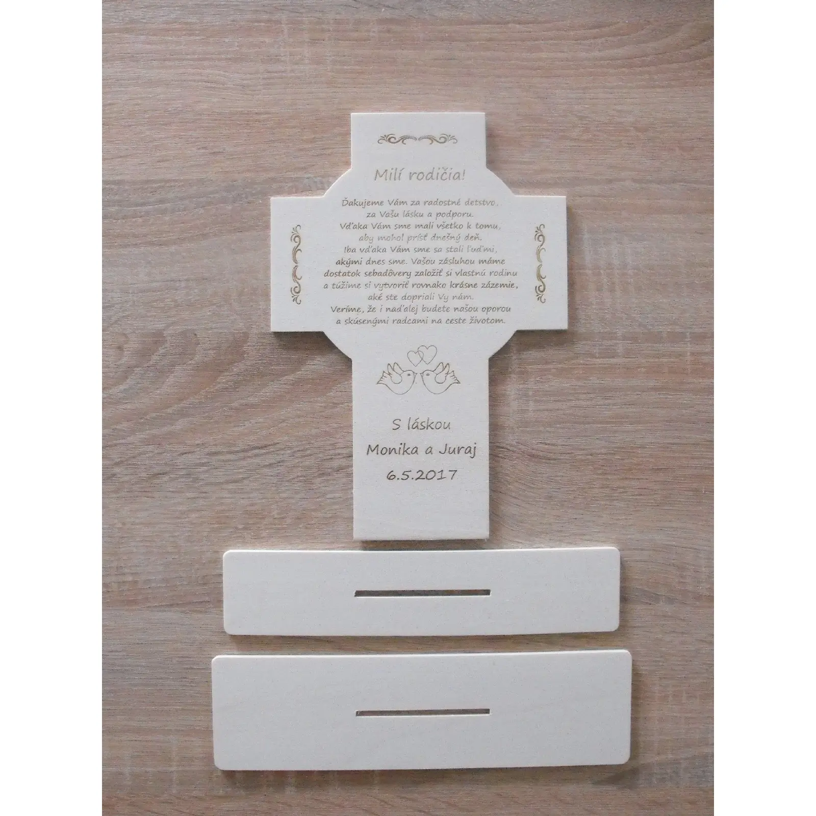Sind Sie auf der Suche nach einer einzigartigen Möglichkeit, um Ihren Eltern Ihre Dankbarkeit auszudrücken? Die kreuzförmige Dekoration mit den Abmessungen 25,5 x 25 cm ist ein elegantes und berührendes Dankeschön, das Ihre Eltern für immer schätzen werden.