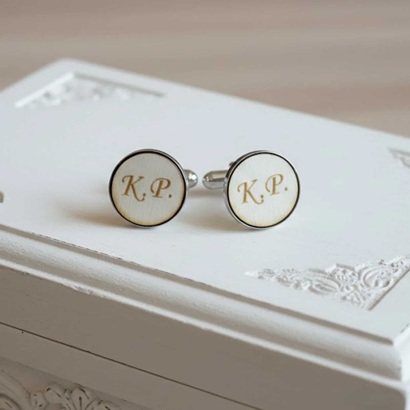 Moderne Herrenmanschetten in Rundform mit Initialen werden maßgefertigt.