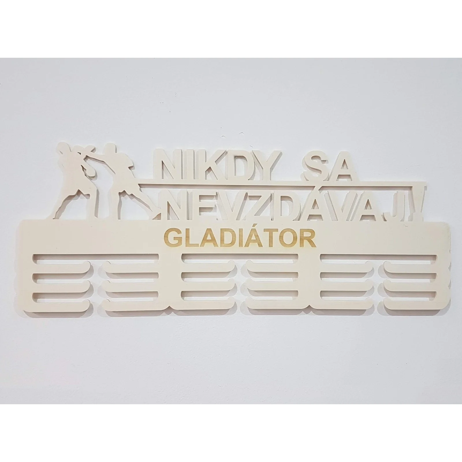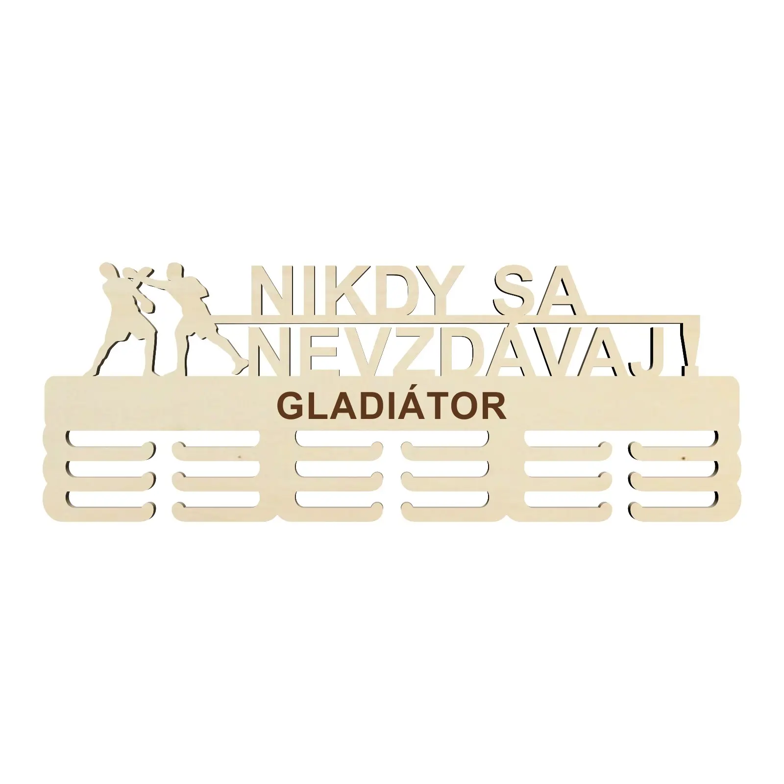 Holzmedaillenhalter gib niemals auf! mit Gravur 55cm