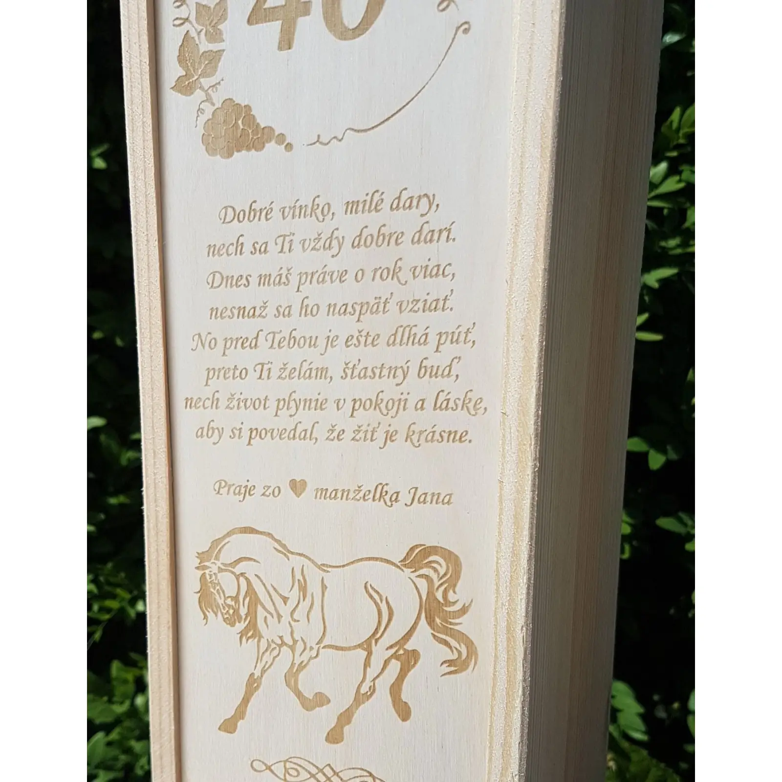 Holzkiste für Weinflaschen Pferd