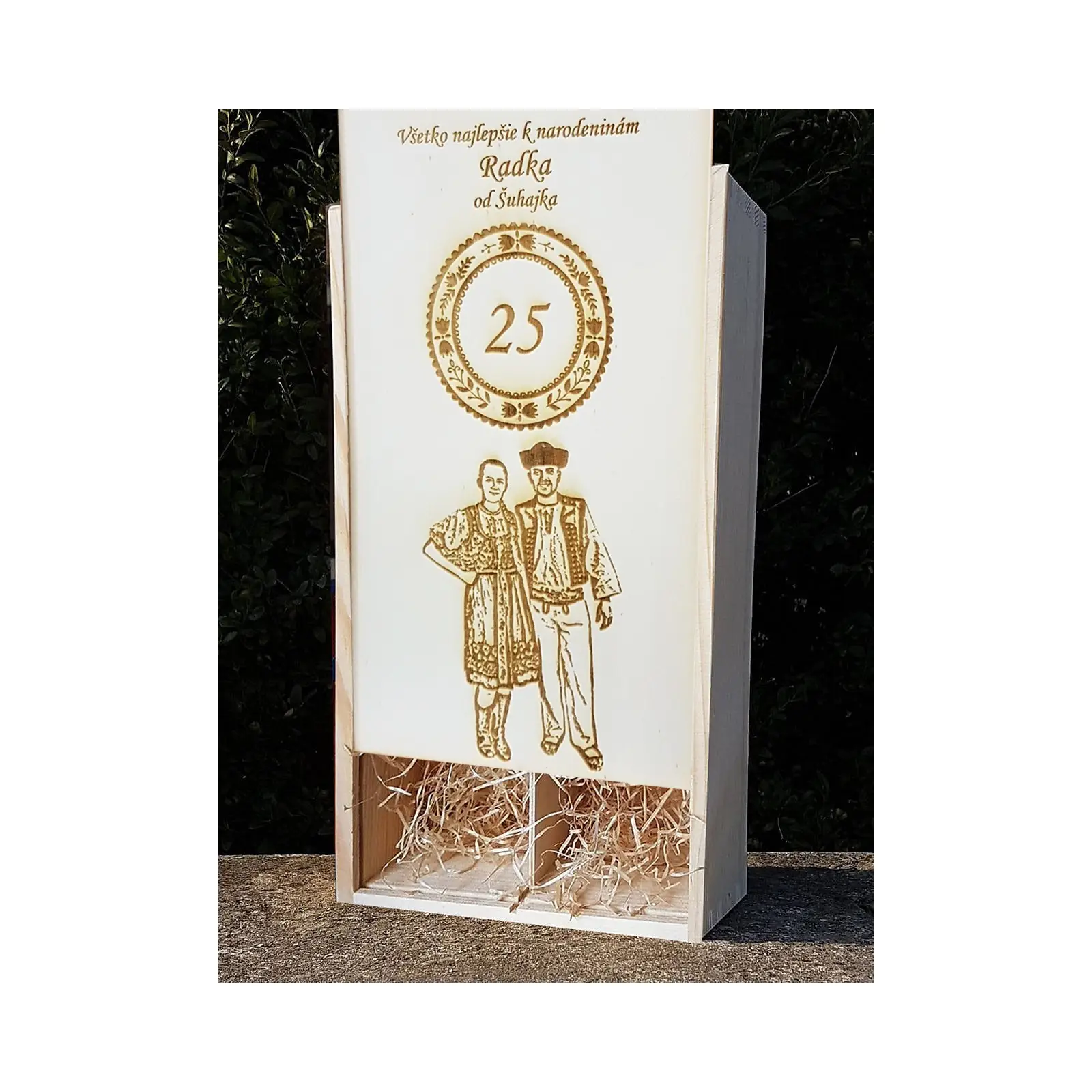Holzkiste Geschenk mit Gravur von FOTO auf Maß 2x0,75l