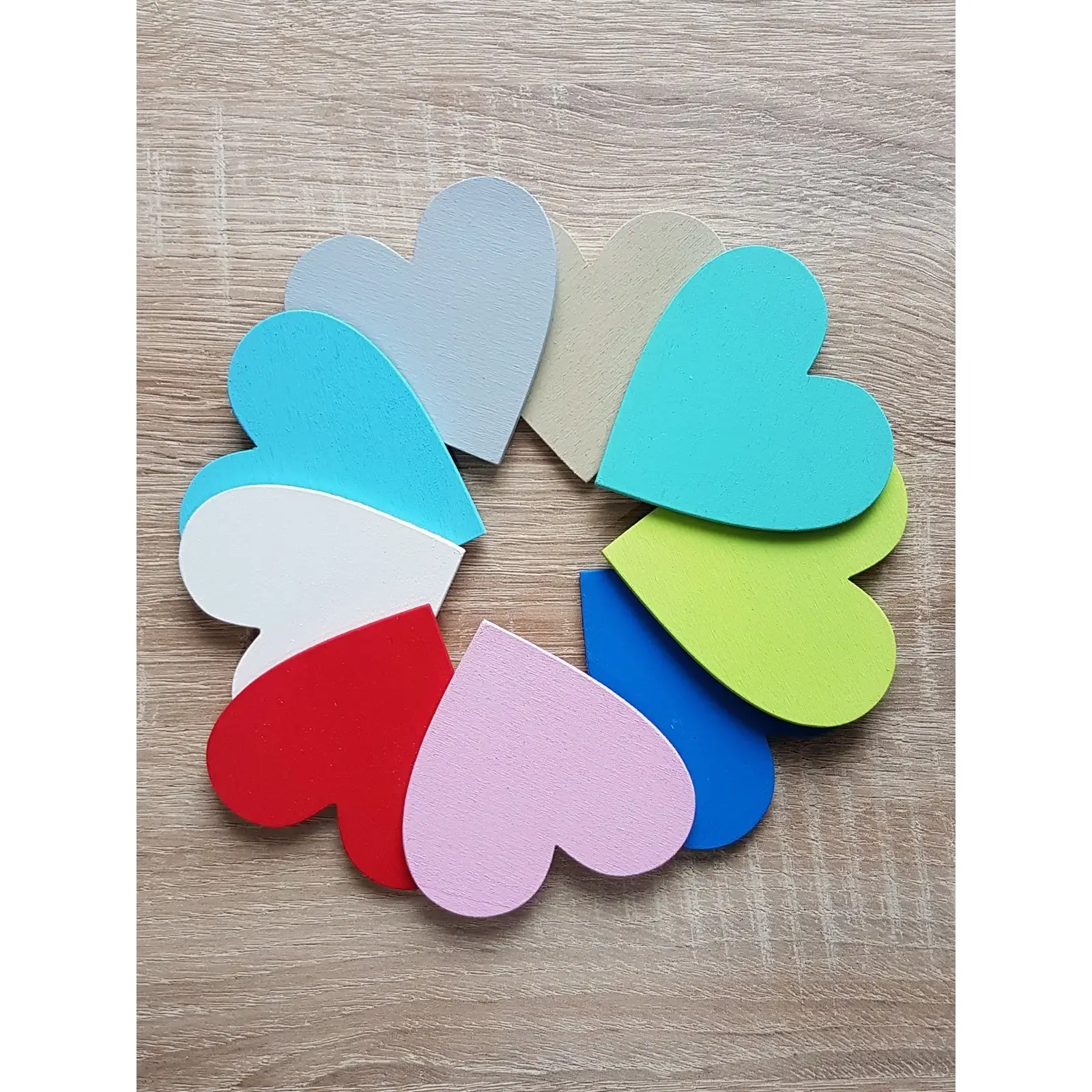 5 hängende Holzanhänger mit Herzform-Namen
