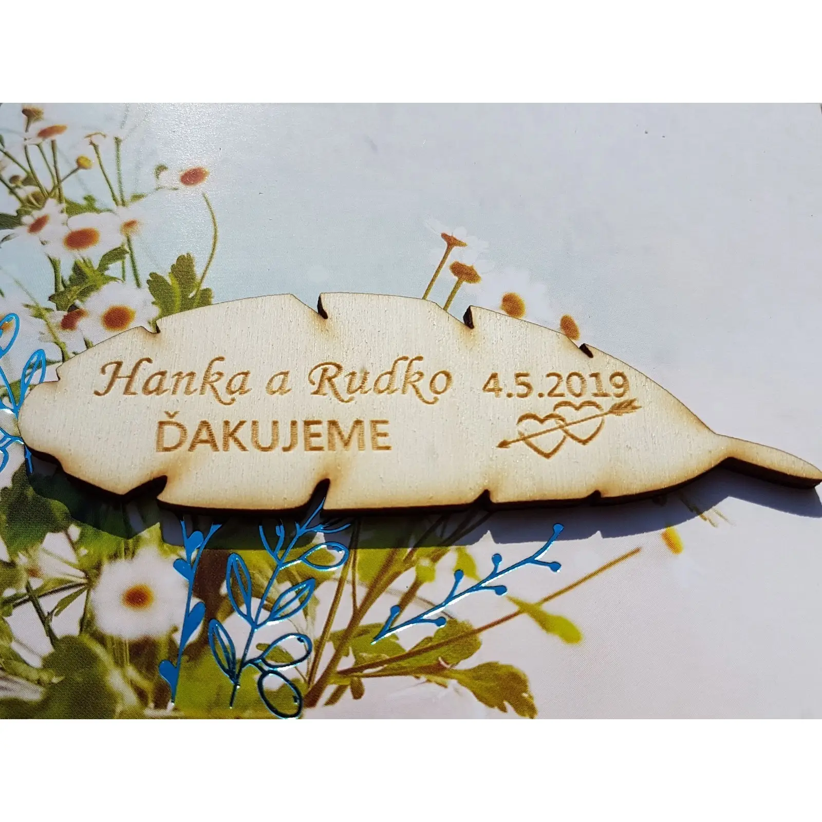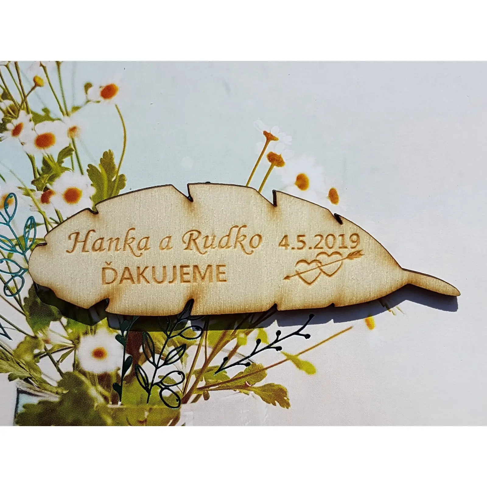 - Personalisierung: Die Magnete in Form von Federn können mit den Namen der Frischvermählten, dem Hochzeitsdatum oder einer kurzen Botschaft personalisiert werden.