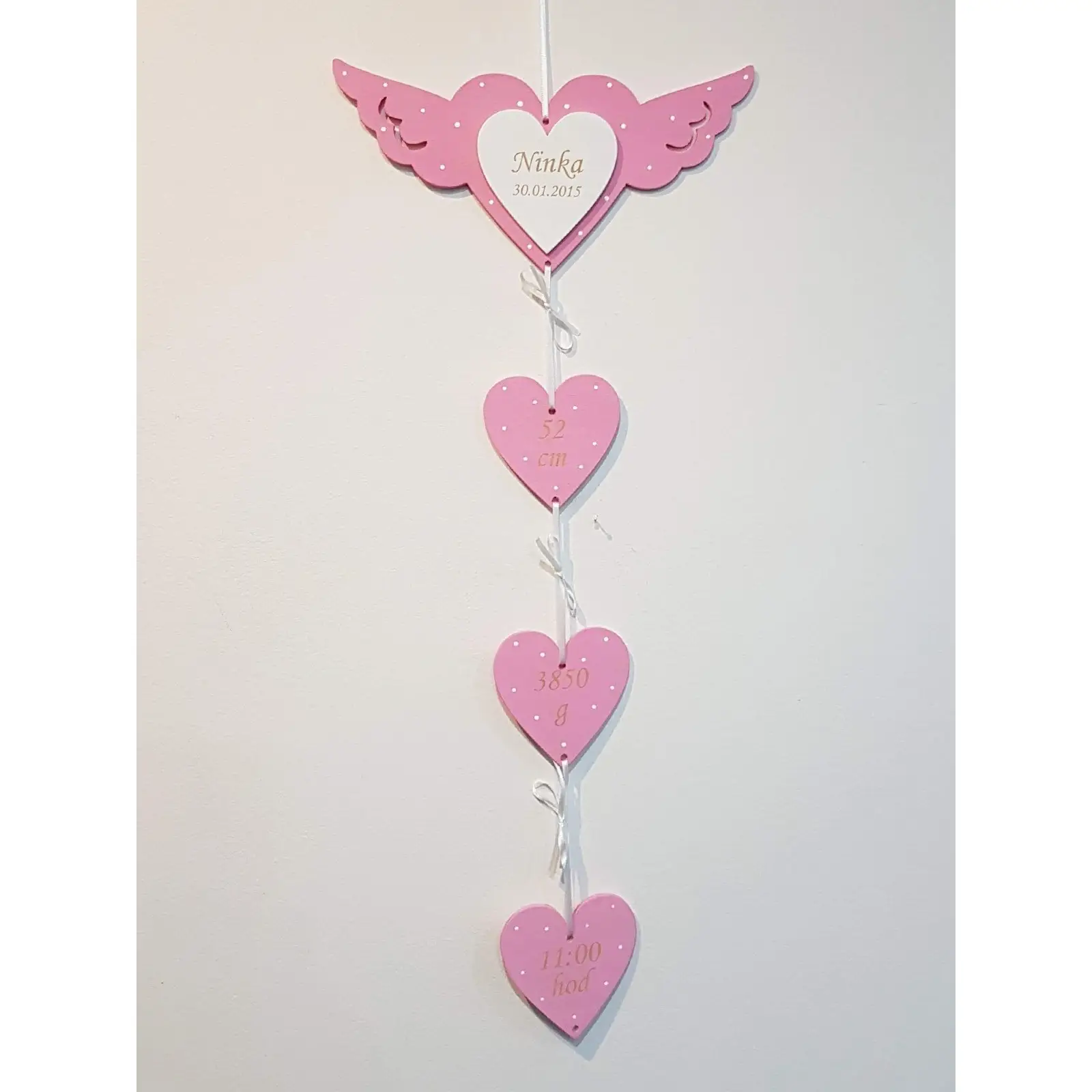 Holzname mit 4 Daten auf den Schutzflügeln eines Engels