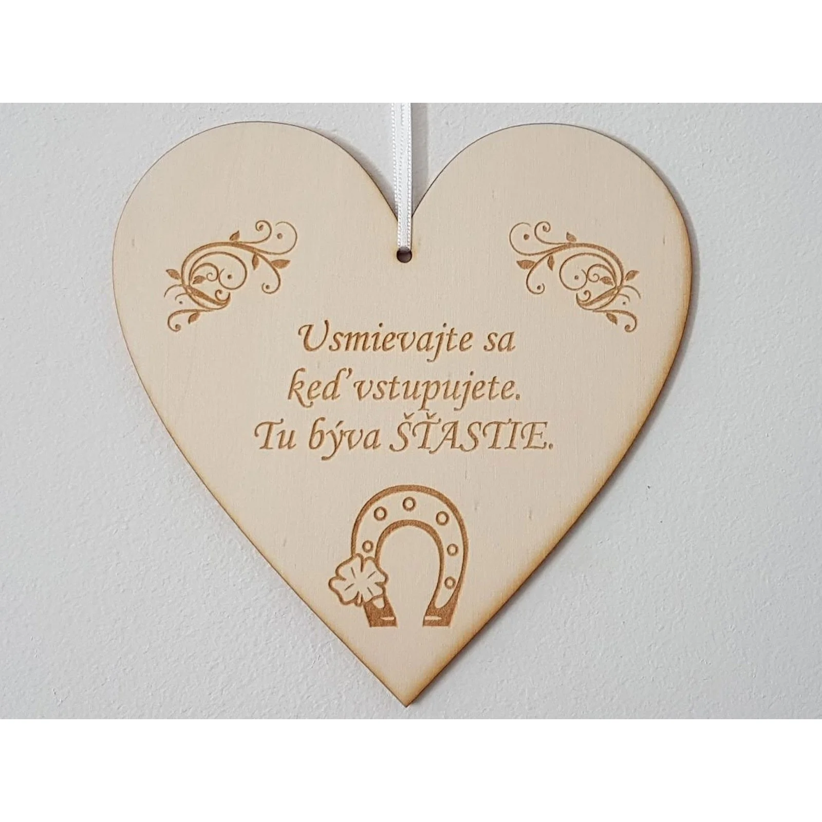 Es ist ein Gefühl, das Sie überwältigt, sobald Sie den Schlüssel im Schloss umdrehen. Manchmal genügt eine Kleinigkeit, um uns daran zu erinnern, dass wir bereits das Wertvollste besitzen. Unser 17 cm großes Holzschild mit der Inschrift „Hier wohnt das Glück“ ist genau so ein Detail. Ein Holzschild, das sich als Geschenk oder Dekoration für Wohnung oder Haus eignet. Ich biete ein Herzschild mit dem gelaserten Text „Lächle beim Betreten …“ an. Abmessungen: 170 x 170 x 3 mm