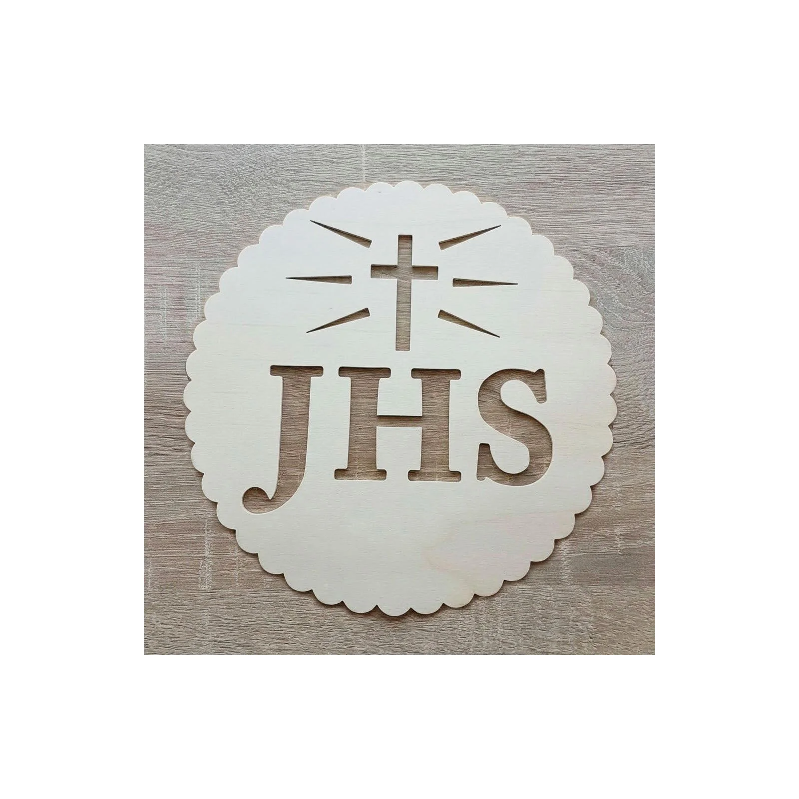 Holzschild mit dem christlichen Aufdruck - JHS und Kreuz, Breite 42 cm