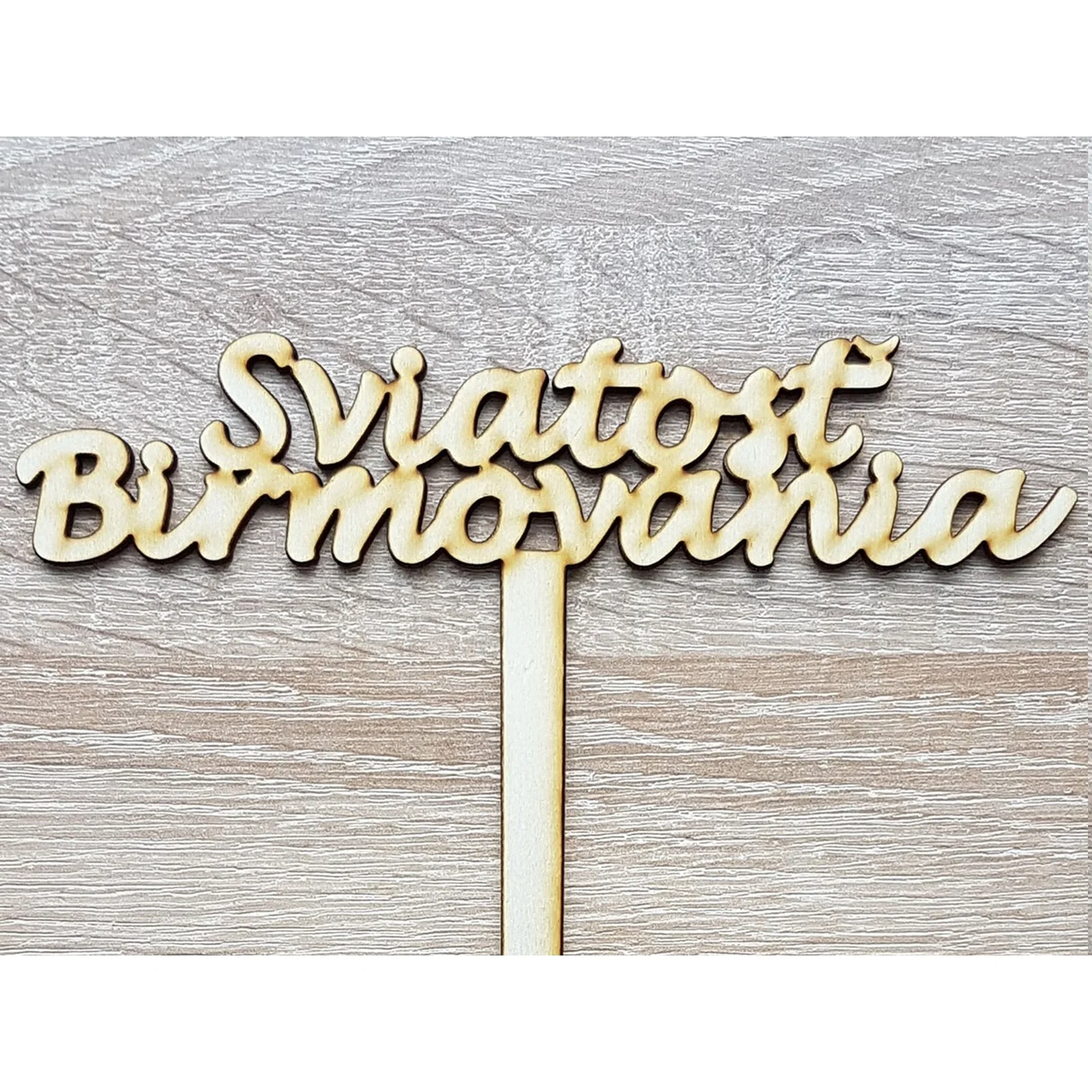 Ich biete einen Holzstecker zur Firmung an, der sich perfekt für Torten oder Blumensträuße eignet.