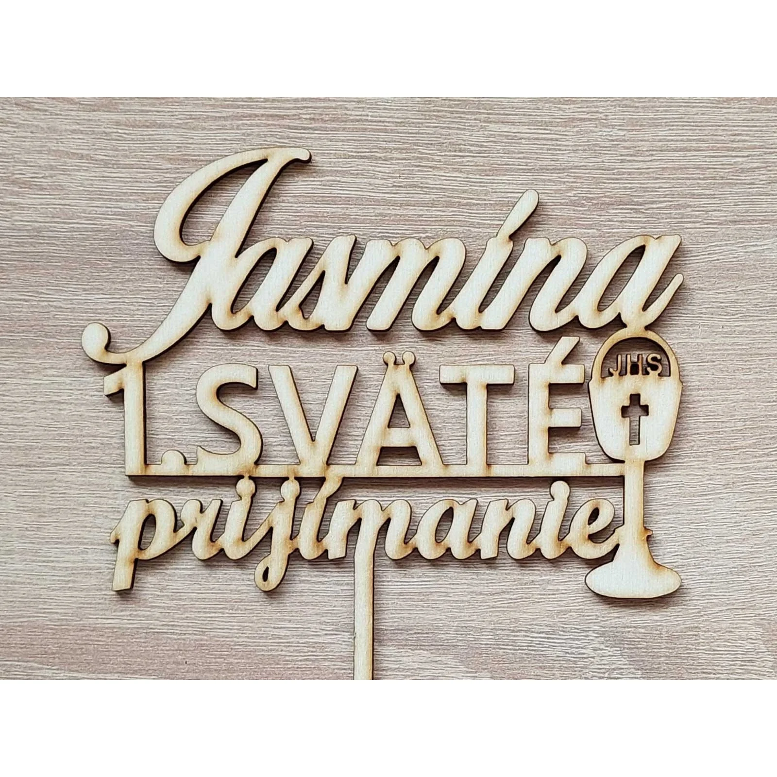 Holzstecker zur ersten heiligen Kommunion mit Kelch und Namen – perfekte Dekoration