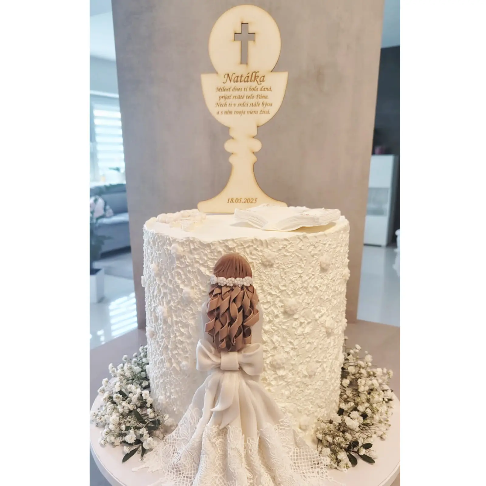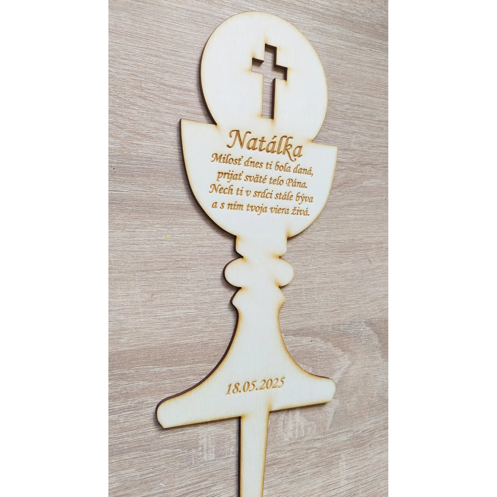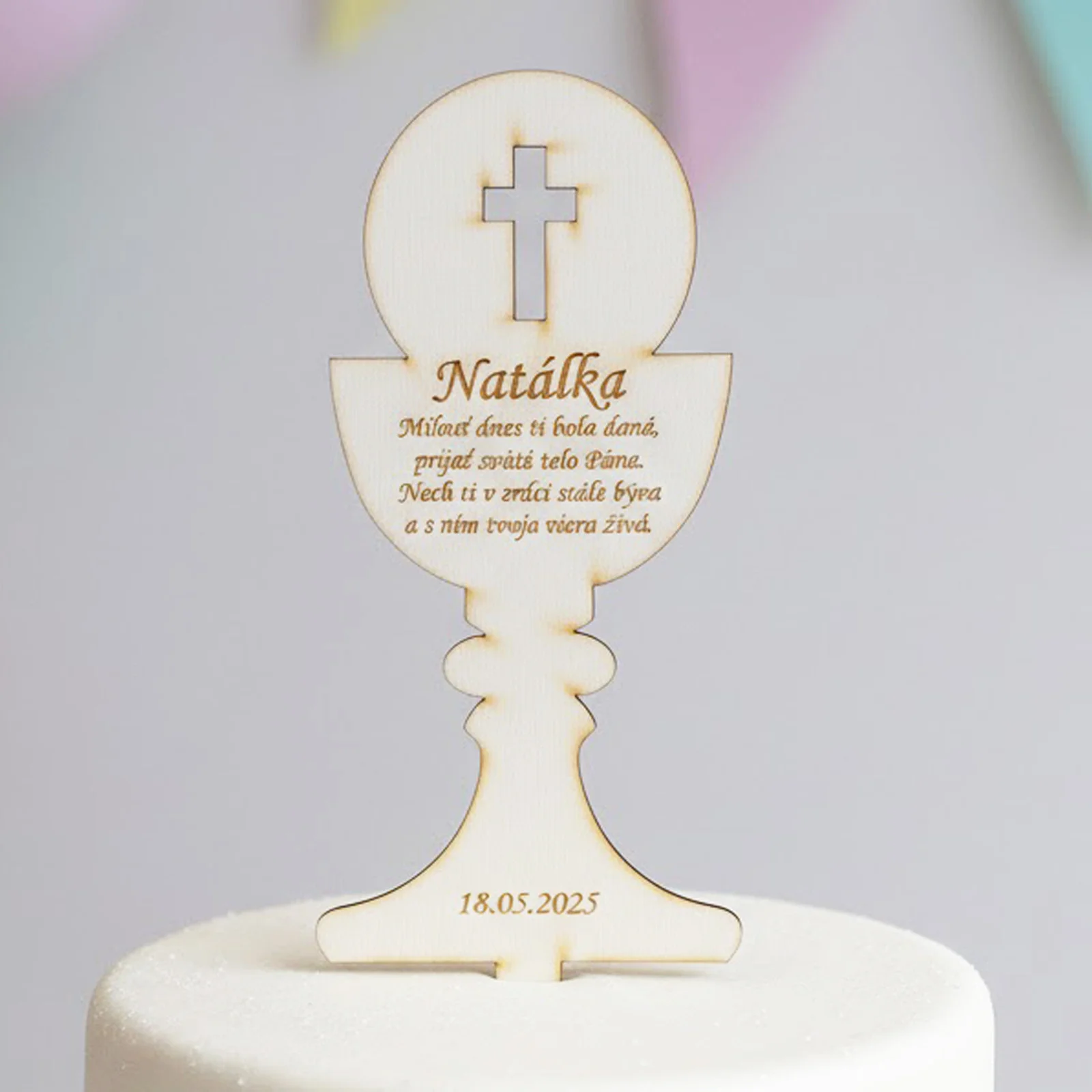 Holzdekorationen bringen ein Gefühl von Wärme, Natur und Authentizität in unser Leben. Dies ist bei diesem eleganten Schnitt nicht anders. Seine Höhe von 20 cm sorgt dafür, dass er auf der Torte auffällt, aber gleichzeitig nicht stört. Die präzise geschnitzte Form des Kelches symbolisiert Feier, Fülle und Segen und macht ihn zu einer idealen Wahl für verschiedene bedeutende Ereignisse: