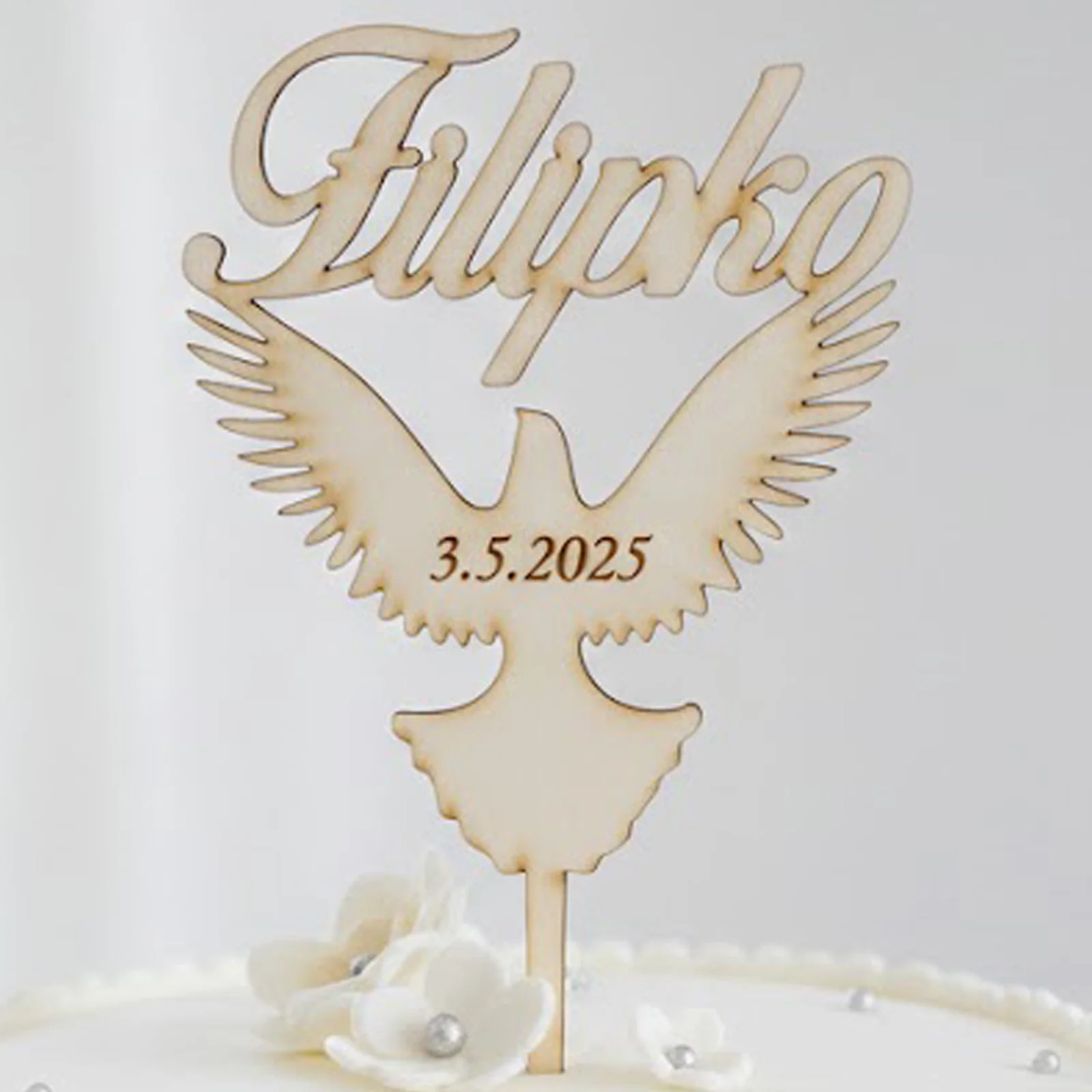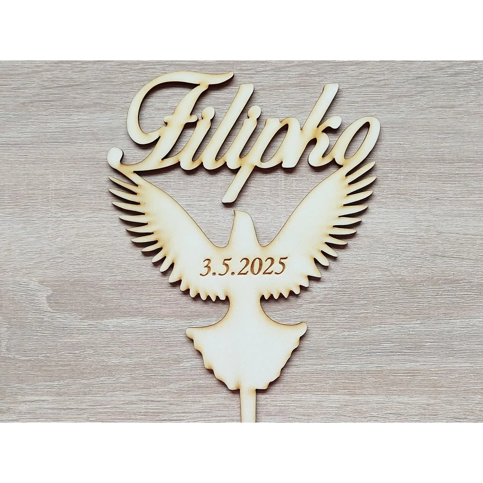 Diese elegante Gravur verbindet die Symbolik der Taube, die traditionell den Heiligen Geist, Frieden und Reinheit repräsentiert, mit der persönlichen Note des eingeschnitzten Namens des jubelnden Kindes.