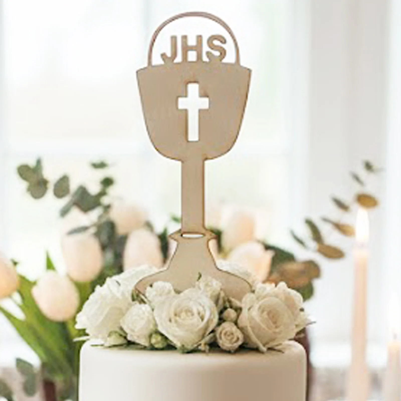 Suchen Sie eine originelle und langlebige Möglichkeit, um eine Torte oder ein anderes Dessert für die Erstkommunion zu dekorieren? Ein Holzstecker in Form eines Kelchs ist eine großartige Wahl!