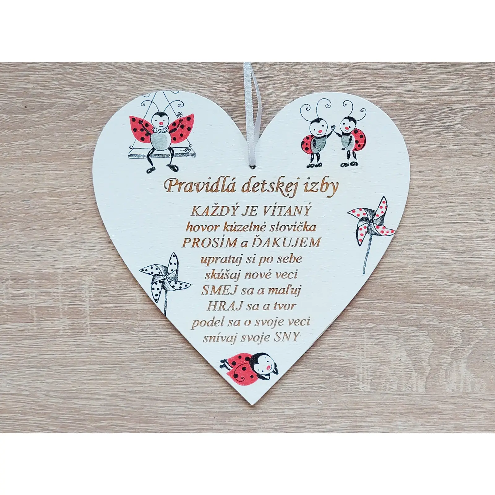 - Vzácna pamiatka: "Zaistite si krásnu pamiatku na detstvo vašich ratolestí. Drevené srdiečko s pravidlami bude nielen praktickým pomocníkom, ale aj originálnym doplnkom detskej izby."