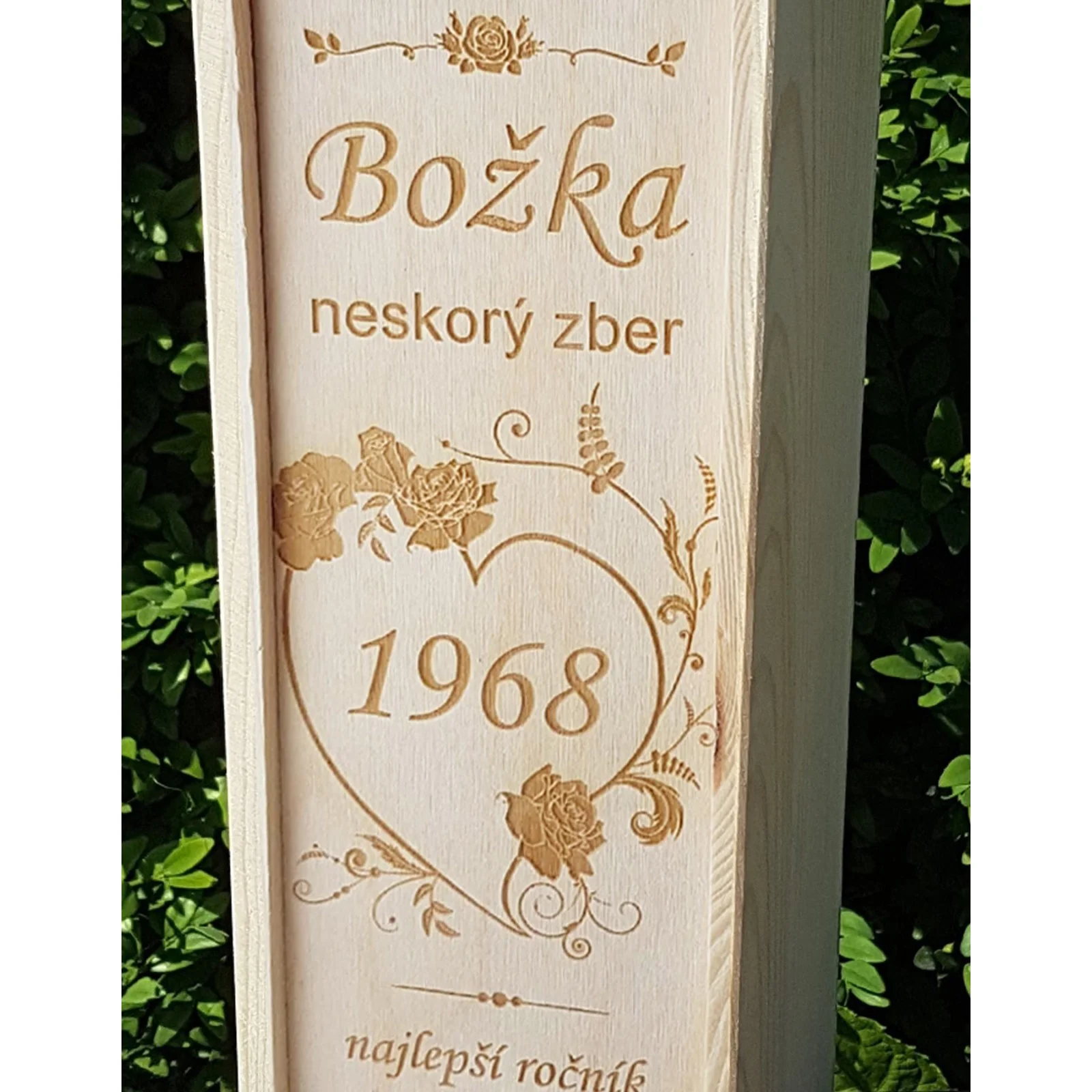- Trvanlivosť: Drevo je odolný materiál, ktorý vydrží dlhé roky. Takýto obal môže slúžiť ako spomienka na významnú udalosť.