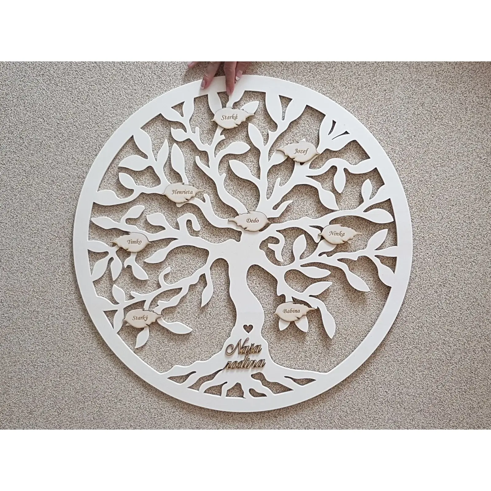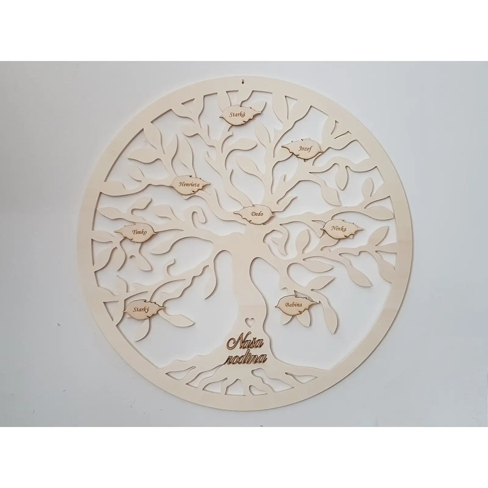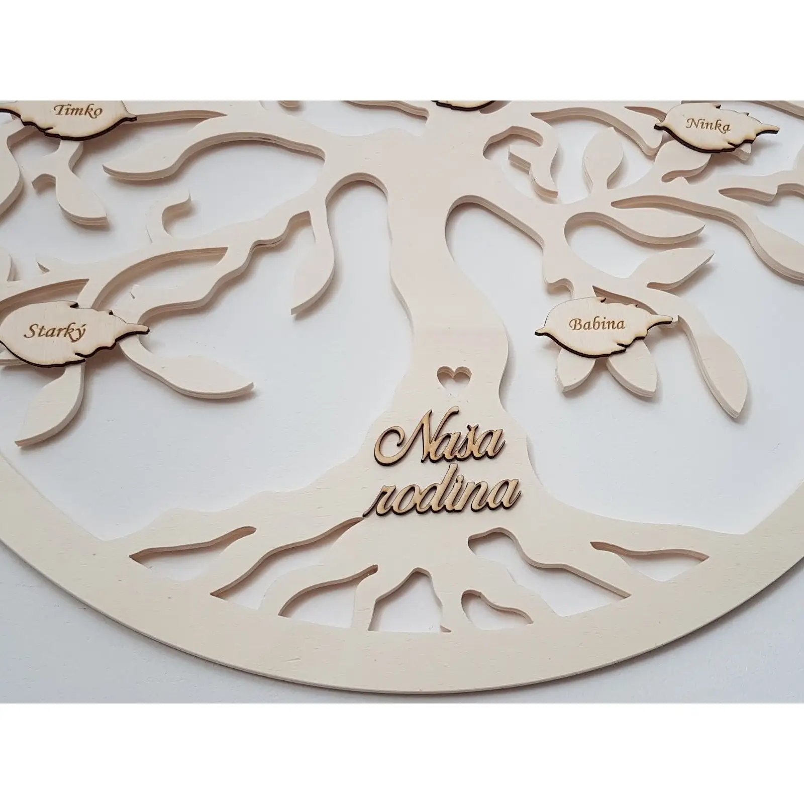 Obsah balenia: Strom (60cm - 1ks) + Nápis (Naša rodina - 1ks) + Lístky/Srdiečka/Ovál (20ks s vygravírovaním mien)