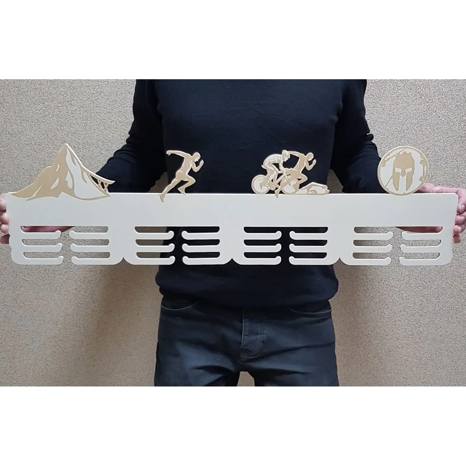 80cm drevený vešiak na medaile s laserovaním ATLETIKA, TRIATLON