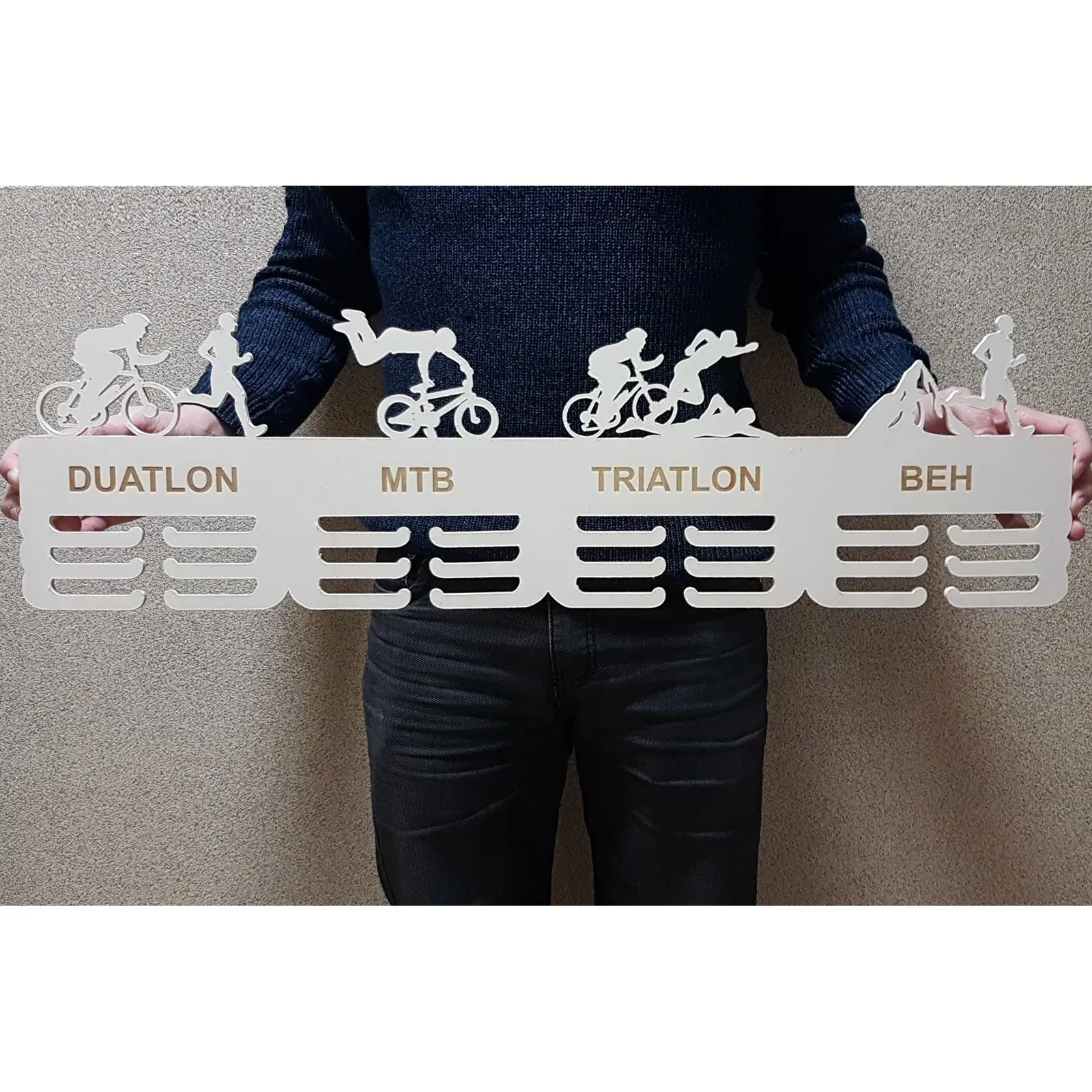 Ste vášnivý športovec, ktorý sa venuje atletike, duatlonu, triatlonu alebo horskej cyklistike? Máte doma zbierku medailí, na ktoré ste právom hrdí, ale neviete, ako ich elegantne vystaviť? Potom je pre vás ideálnym riešením 80 cm drevený vešiak na medaily.