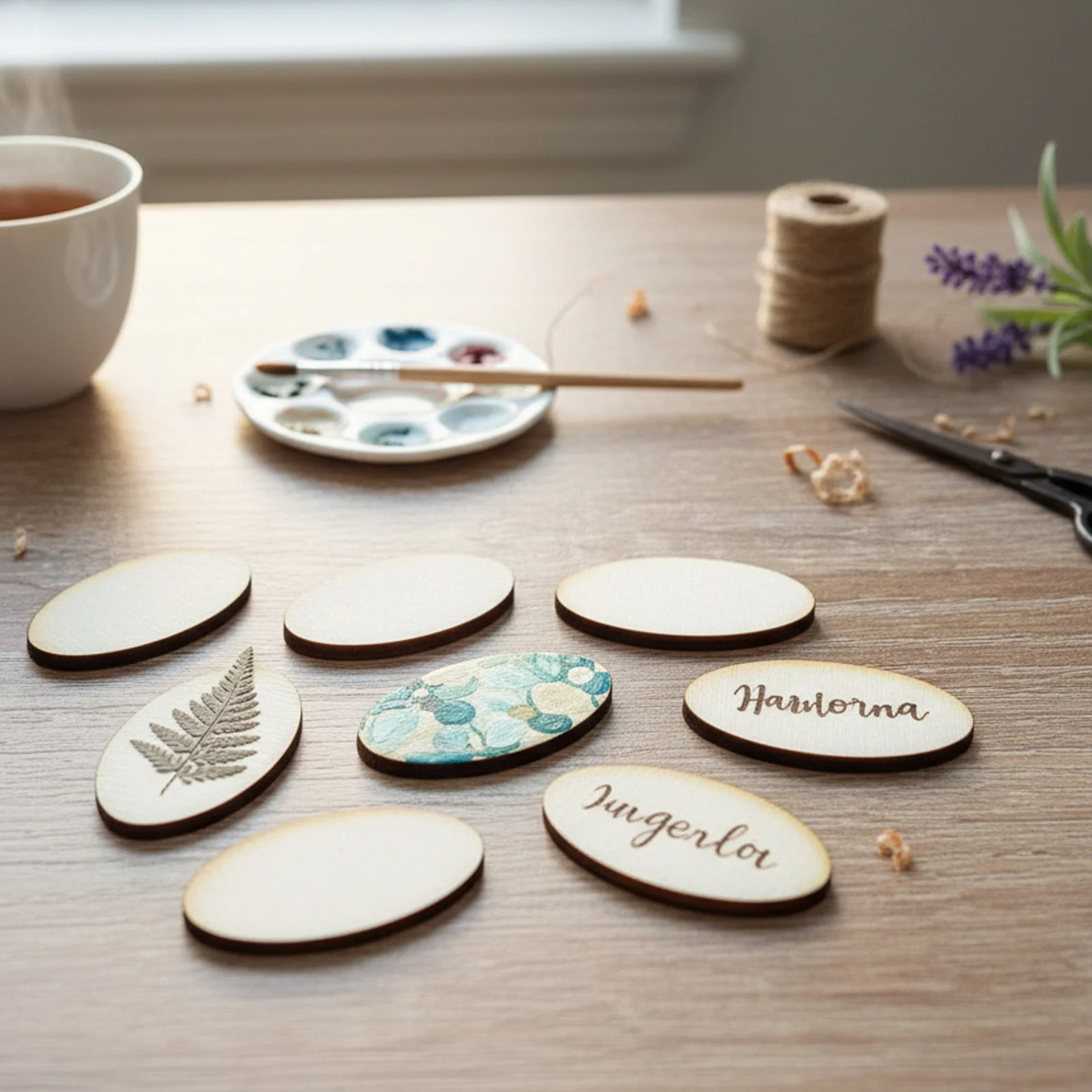 Cutouts of ovals from plywood for a family calendar: