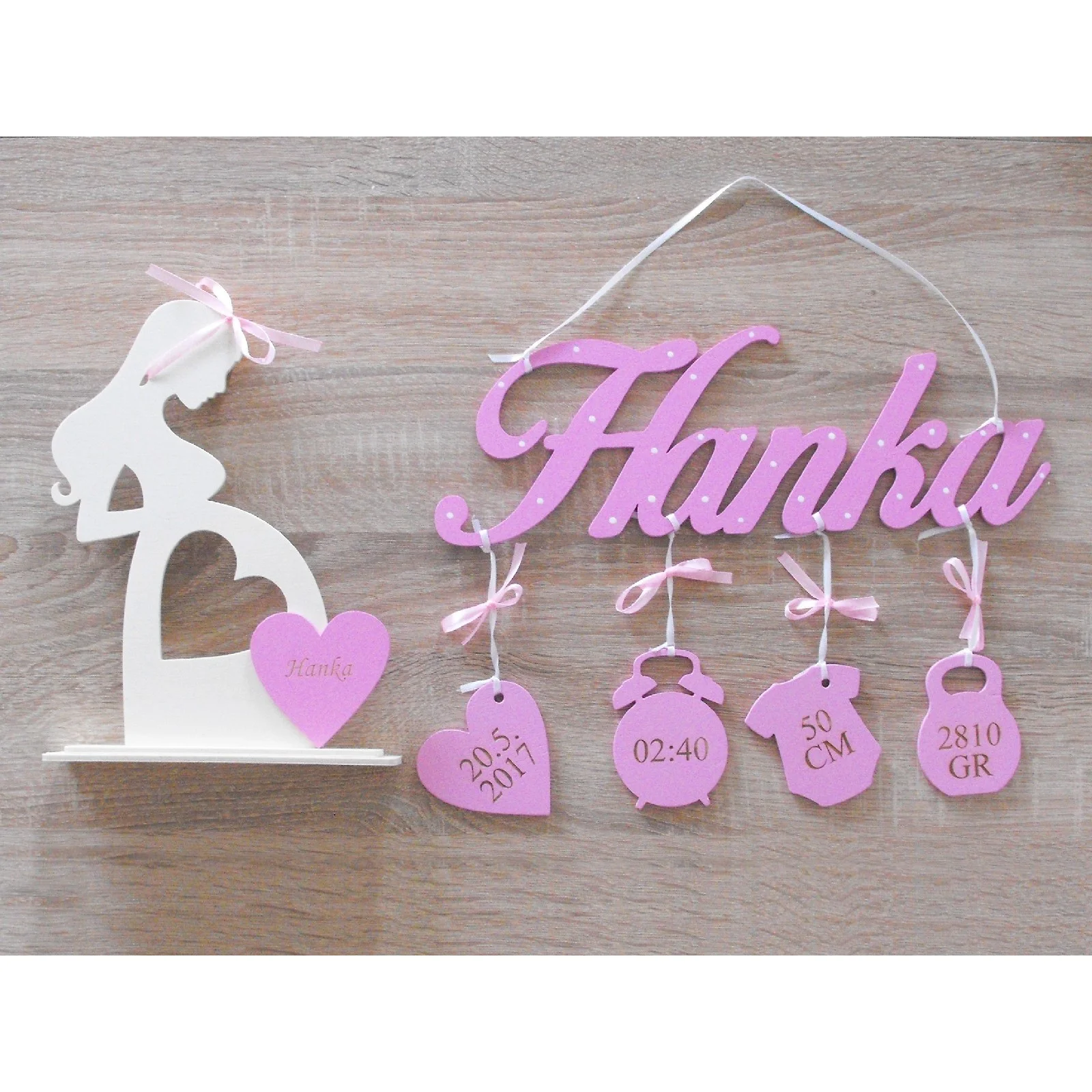 Custom made baby name with attached birth details: Date - Time - Length - Weight.