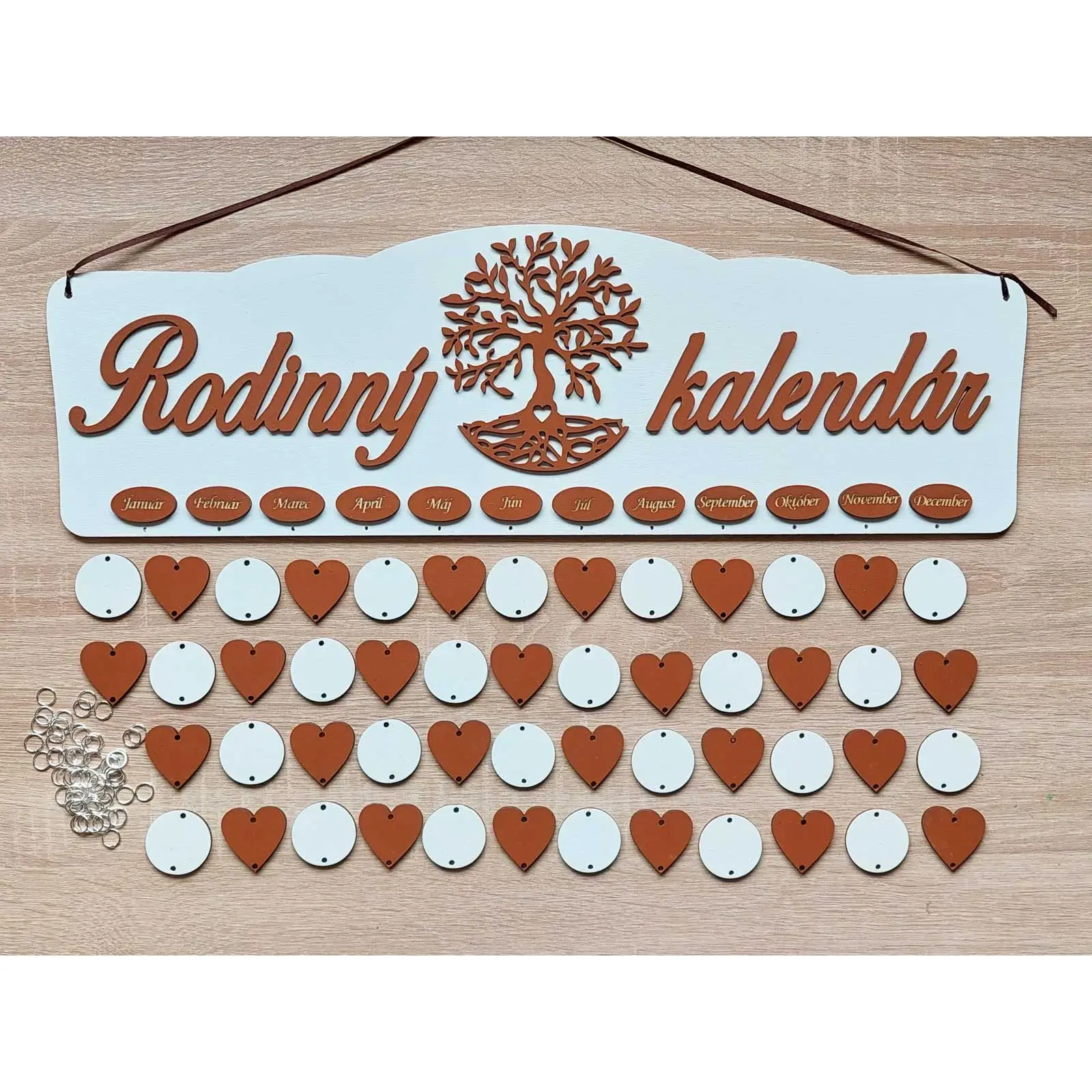 Content of one package: board with attached inscriptions and months, 25x heart, 25x circle, 60x circles for connection (10 mm).